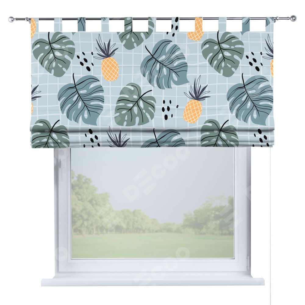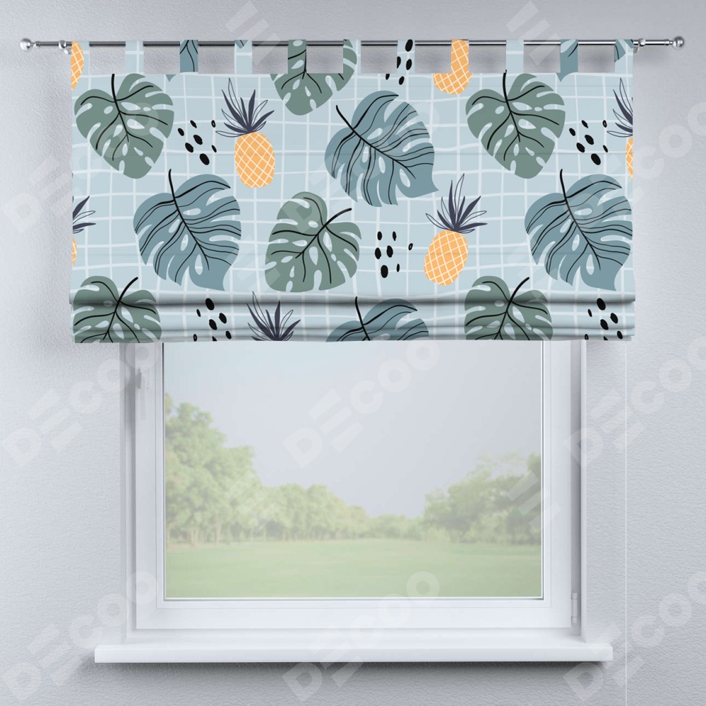 Римская штора на петлях «Ананасы и листья монстеры»