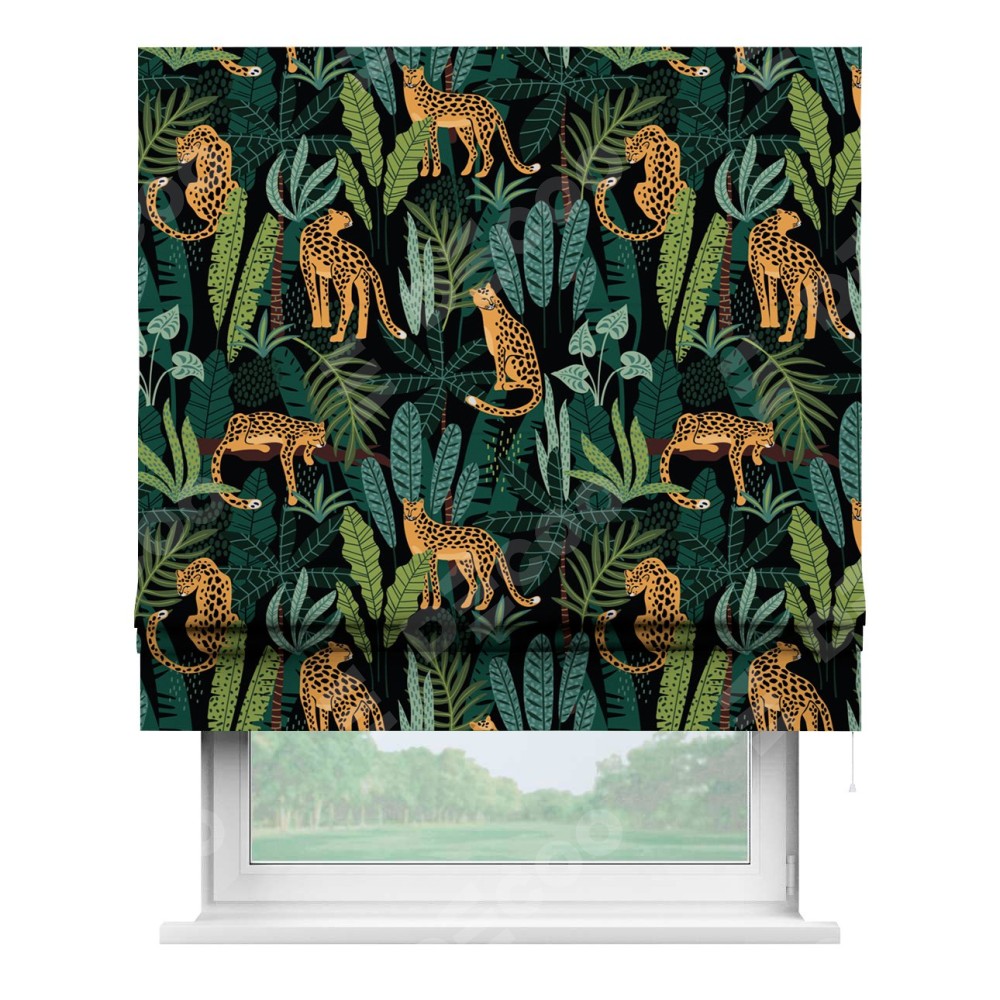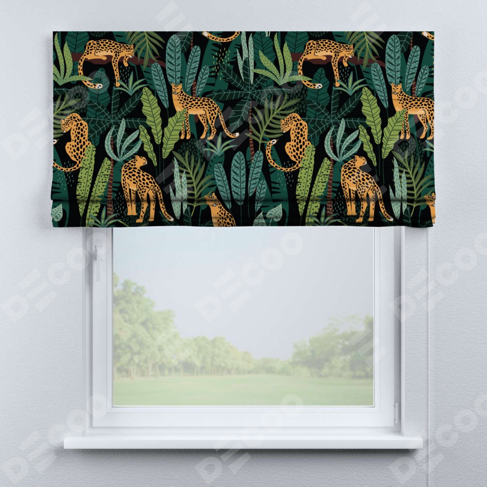 Римская штора «Кортин» для проема «Леопарды в джунглях»