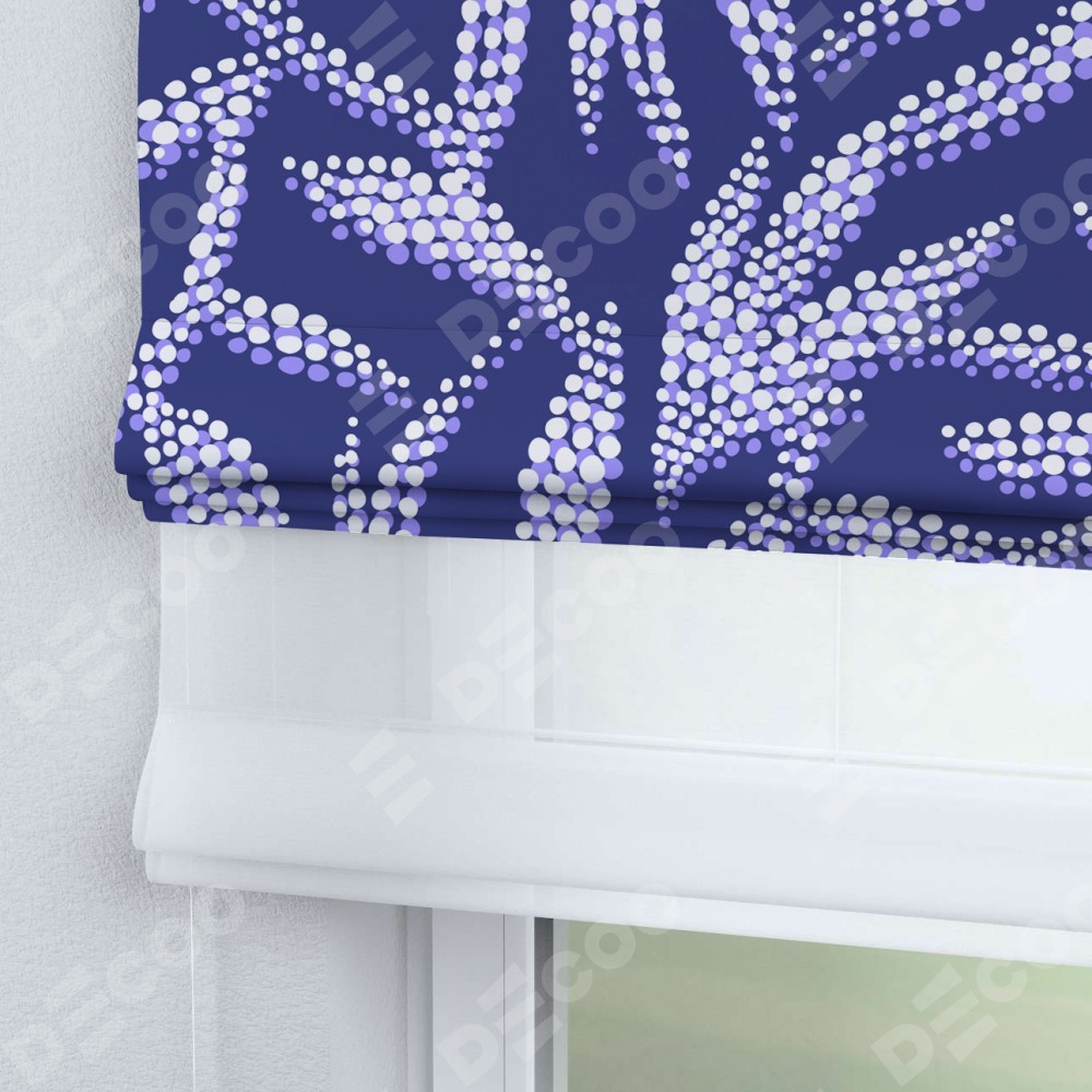Римская штора день-ночь производителя «Cortin», используется для проёма, пошита из двух полотен, с лицевой блэкаут с нанесением сублимационной печати «Ночные цветы», вторая ткань тюль (по стандарту комплектуется тюль белого цвета артикул V-01). Имеет универсальный механизм и подходит для монтажа: на потолок, на стену и в нишу.