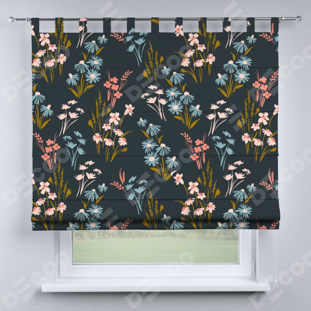 Римская штора производителя «Cortin», используется для проёма, пошита из ткани блэкаут с нанесением сублимационной печати «Чарующие цветы». Данная модель пошита на петлях, комплектуется на выбор круглым карнизом и подходит для монтажа на стену. Римская штора на петлях имеет простую систему регулировки высоты, отличительным преимуществом данной модели является простой способ монтажа. Достаточно повесить ее на трубу и штора готова!