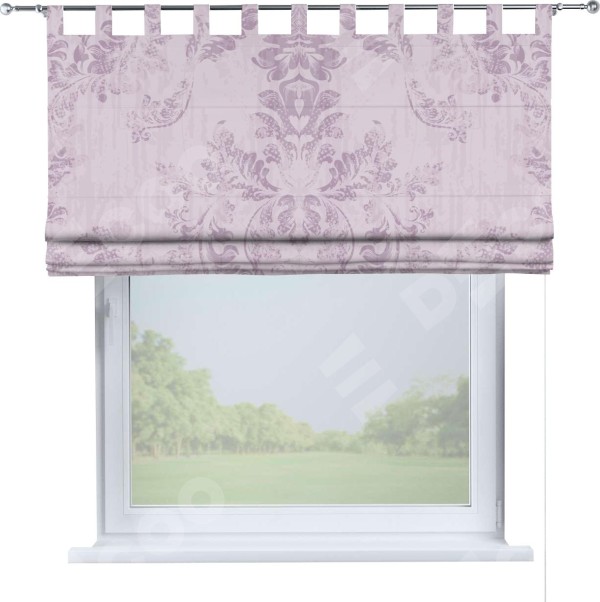 Римская штора производителя «Cortin», используется для проёма, пошита из ткани блэкаут с нанесением сублимационной печати «Винтажный узор сиреневый». Данная модель пошита на петлях, комплектуется на выбор круглым карнизом и подходит для монтажа на стену. Римская штора на петлях имеет простую систему регулировки высоты, отличительным преимуществом данной модели является простой способ монтажа. Достаточно повесить ее на трубу и штора готова!