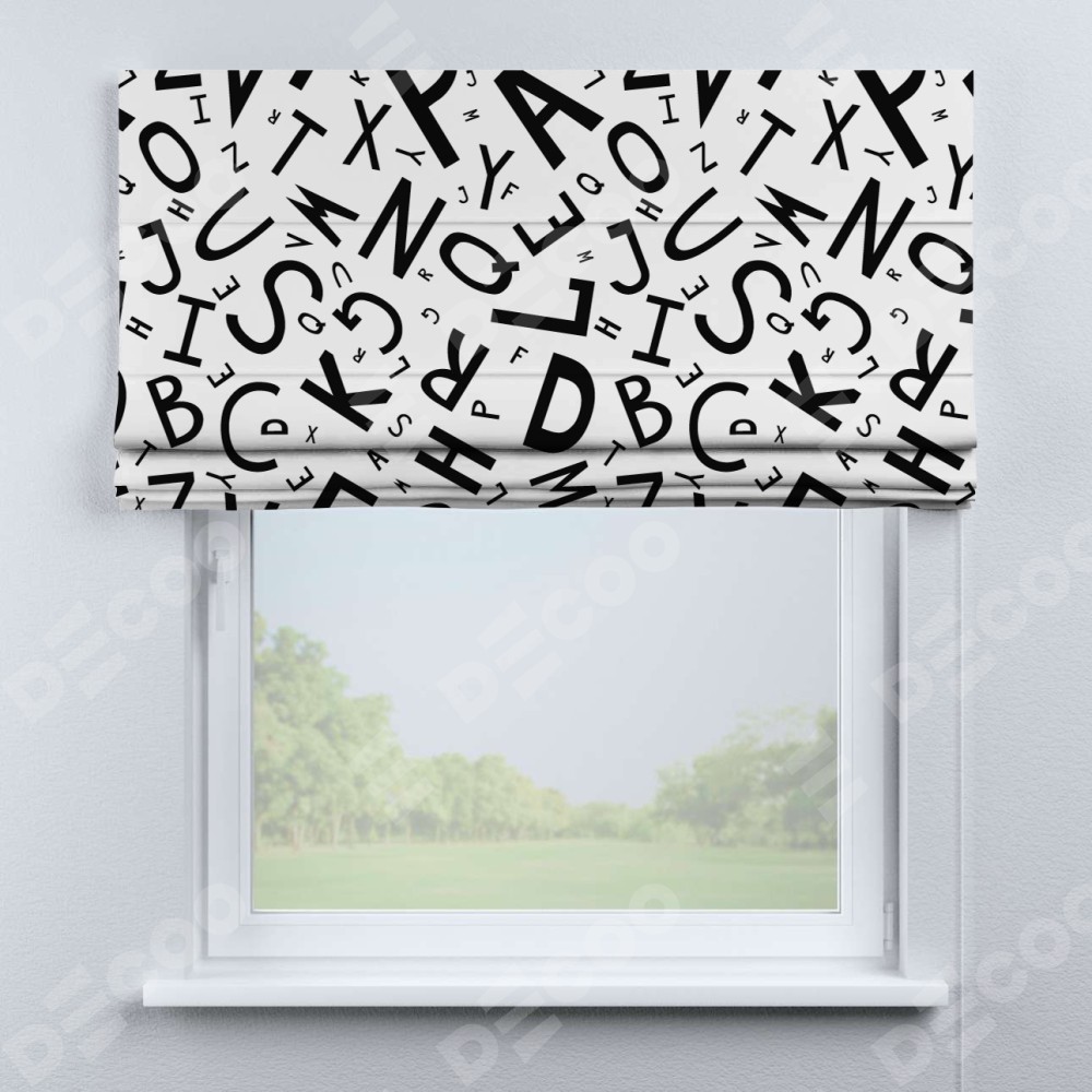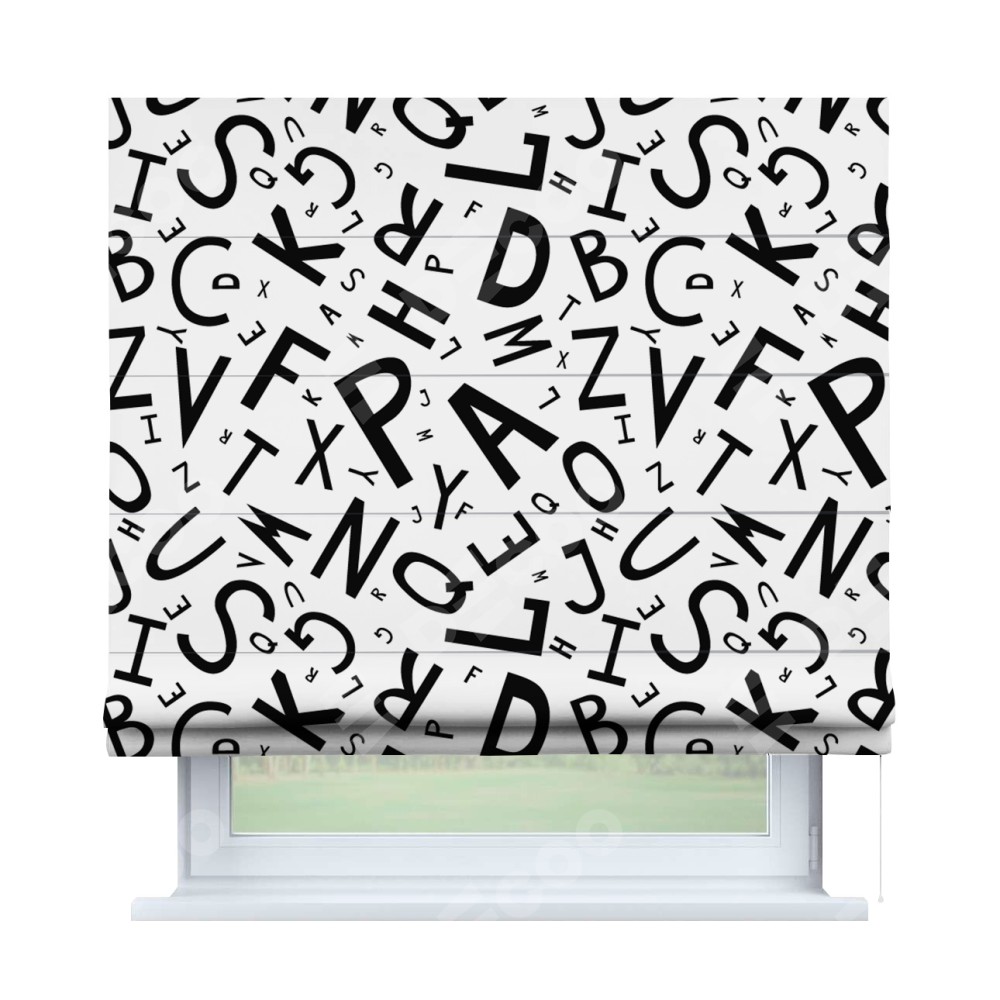 Римская штора «Кортин» для проема «Литеры на белом»