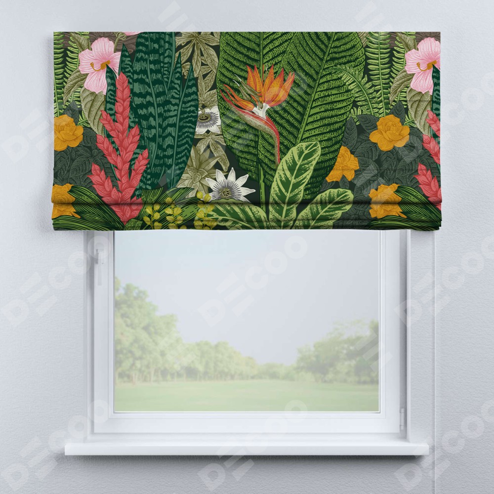 Римская штора производителя «Cortin», используется для проёма, пошита из ткани блэкаут с нанесением сублимационной печати «Яркое цветение». Имеет универсальный механизм и подходит для монтажа: на потолок, на стену и в нишу.