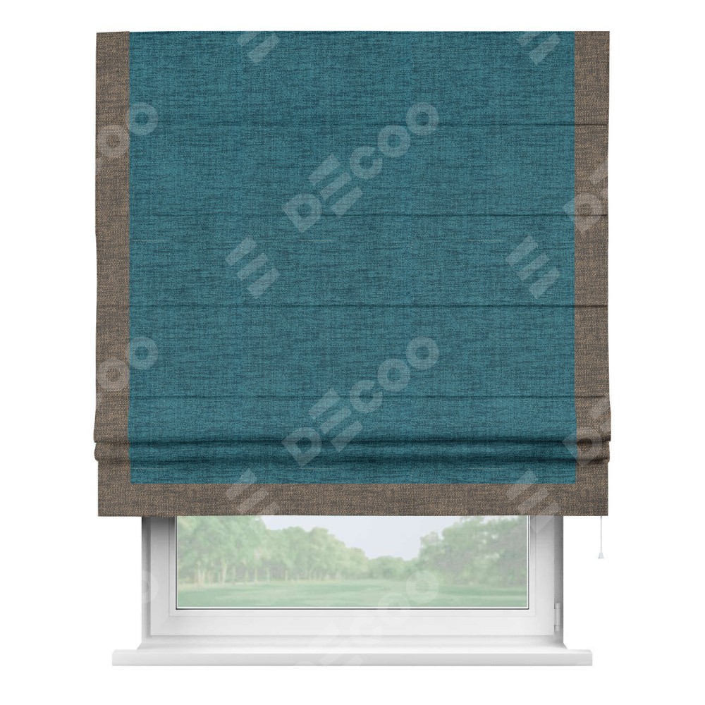 Римская штора «Кортин» с кантом Виктория, для проема, ткань рогожка димаут, синий