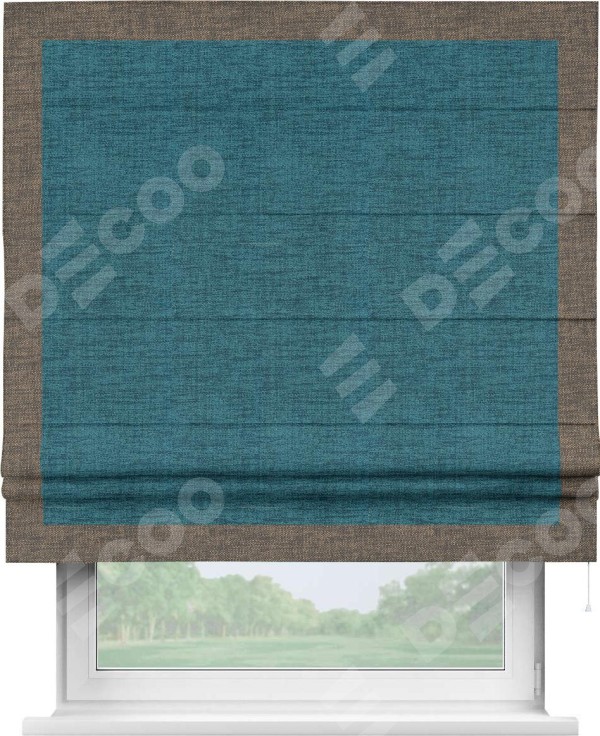 Римская штора «Кортин» с кантом Чесс, для проема, ткань рогожка димаут, синий