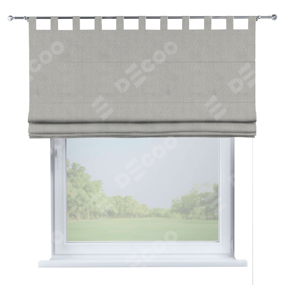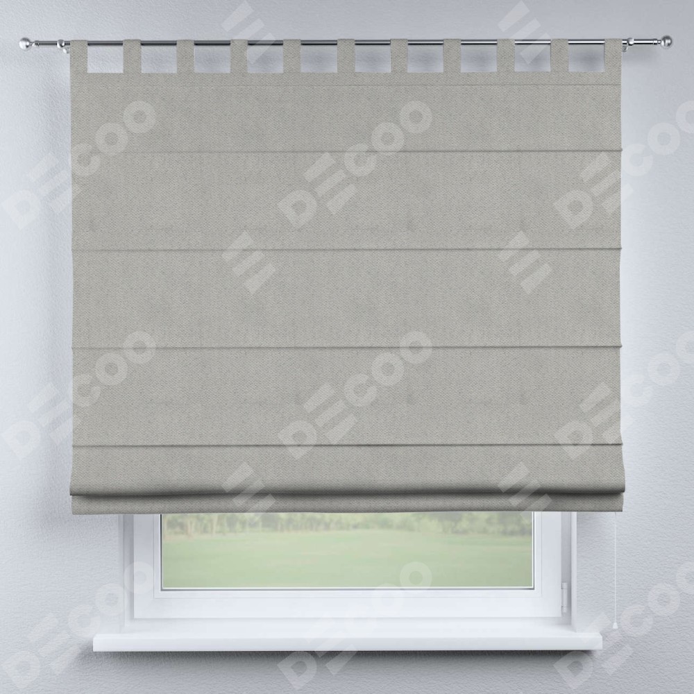 Римская штора производителя «Cortin», используется для проёма, пошита из ткани блэкаут с блеском тёмно-серый, артикул ткани 34634. Изнаночная сторона материала черного цвета, что обеспечивает необходимую светонепроницаемость. Данная модель пошита на петлях, комплектуется на выбор круглым карнизом и подходит для монтажа на стену. Римская штора на петлях имеет простую систему регулировки высоты, отличительным преимуществом данной модели является простой способ монтажа. Достаточно повесить ее на трубу и штора готова!