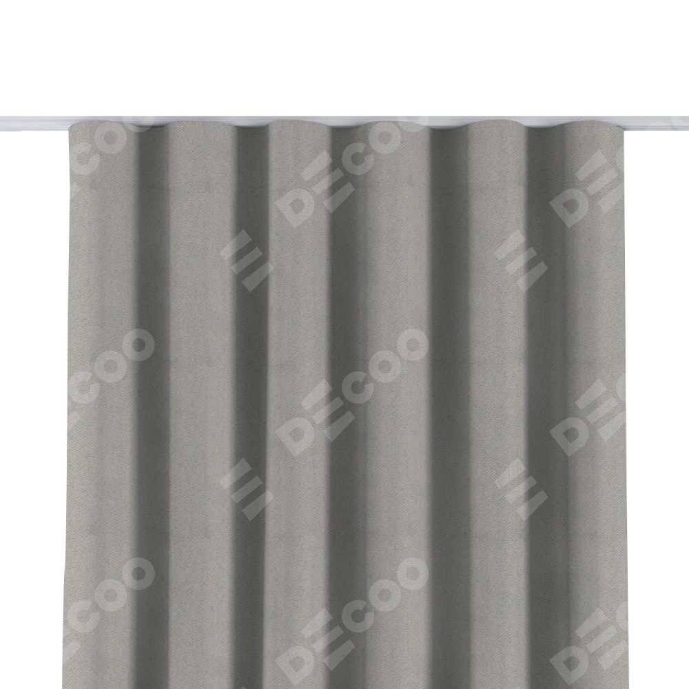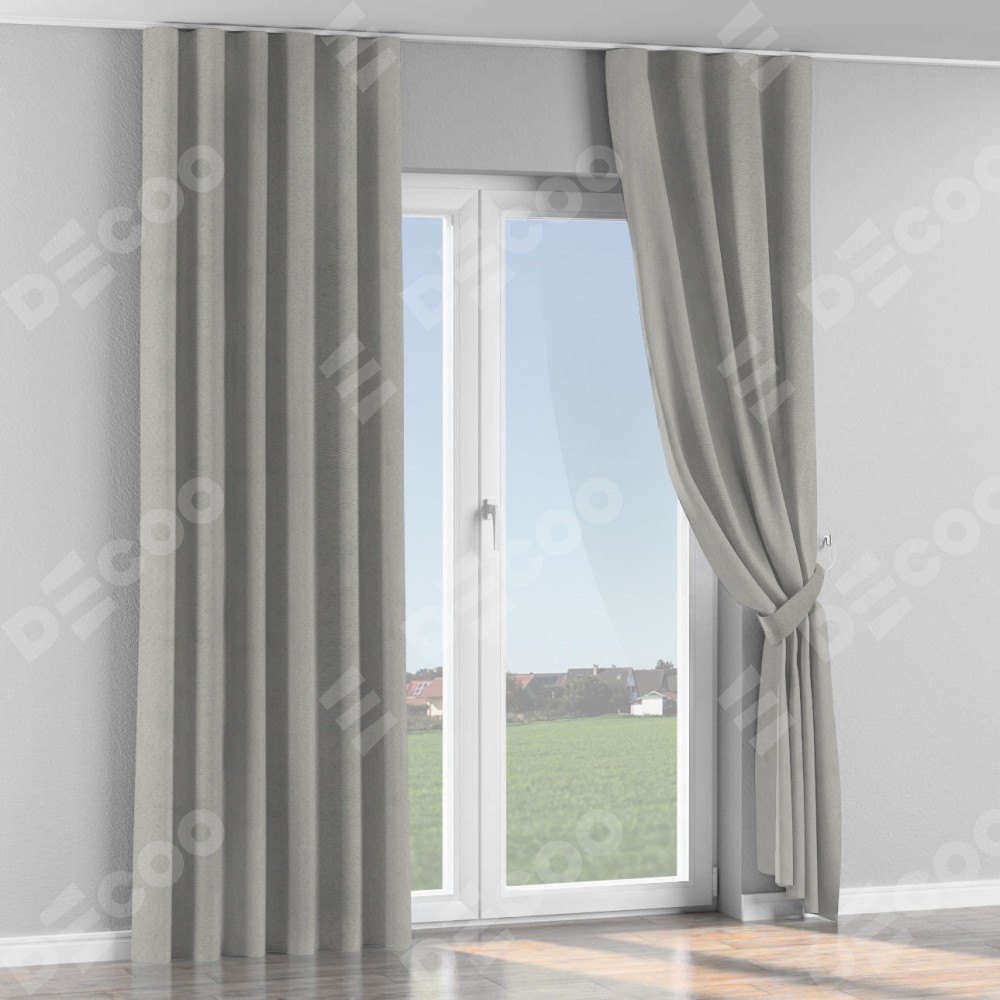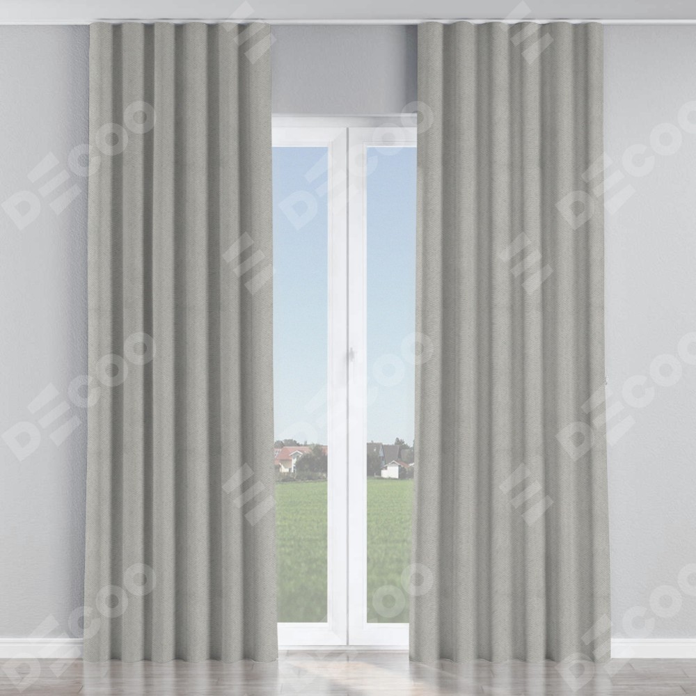 Комплект прямых штор, от производителя «Cortin», пошиты из ткани блэкаут с блеском тёмно-серый, артикул ткани 34634. С изнаночной стороны в верхней части штор пристрачивается шторная лента с декоративными складками «Волна». Обратная сторона основного материала черного цвета, что обеспечивает необходимую светонепроницаемость. Для создания элегантных складок прямые шторы шьются по стандарту с коэффициентом 1:2 (на 100 см. ширины проёма 200 см. ширины ткани).