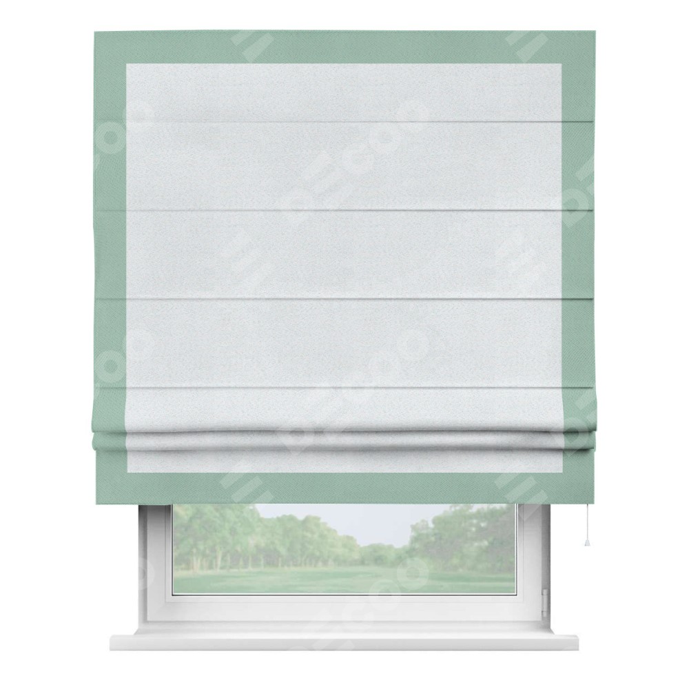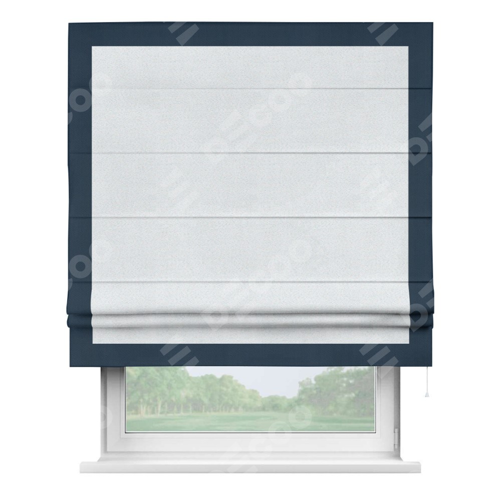 Римская штора производителя «Cortin», используется для проёма, пошита из ткани блэкаут однотонный дымчато-белый, артикул ткани 101. Отделка шторы кантом «Чесс», ткань для канта используется из блэкаута однотонного разной расцветки на выбор. Имеет универсальный механизм и подходит для монтажа: на потолок, на стену и в нишу.