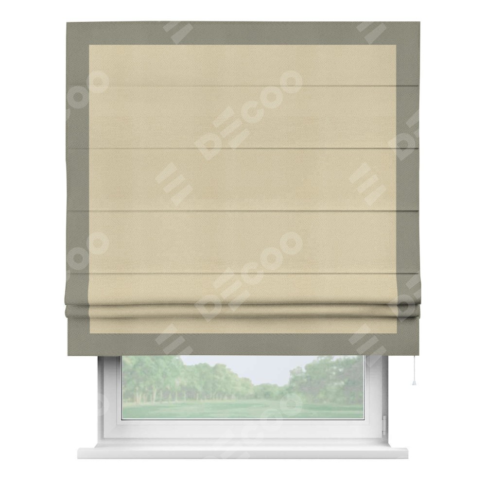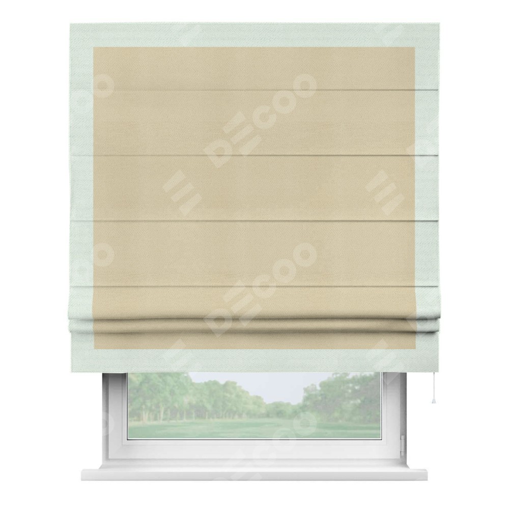 Римская штора производителя «Cortin», используется для проёма, пошита из ткани блэкаут однотонный милано латте, артикул ткани 05. Отделка шторы кантом «Чесс», ткань для канта используется из блэкаута однотонного разной расцветки на выбор. Имеет универсальный механизм и подходит для монтажа: на потолок, на стену и в нишу.