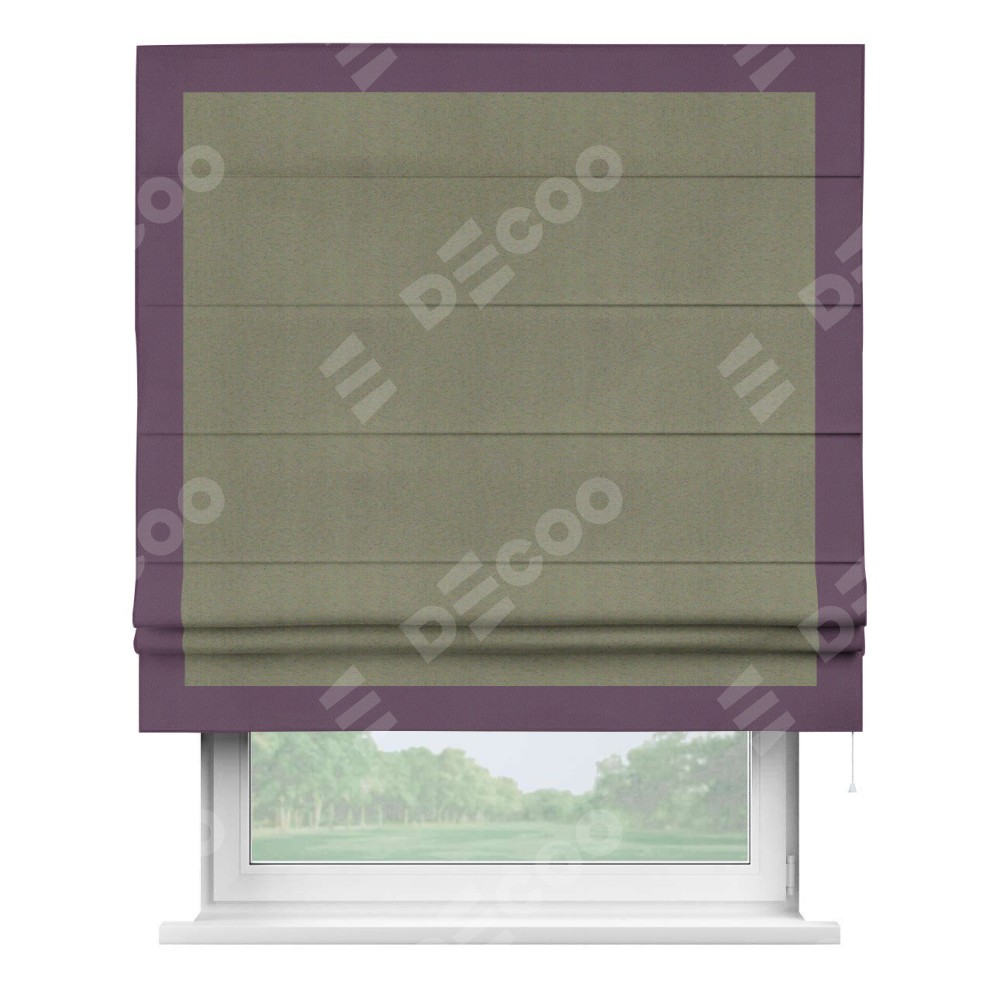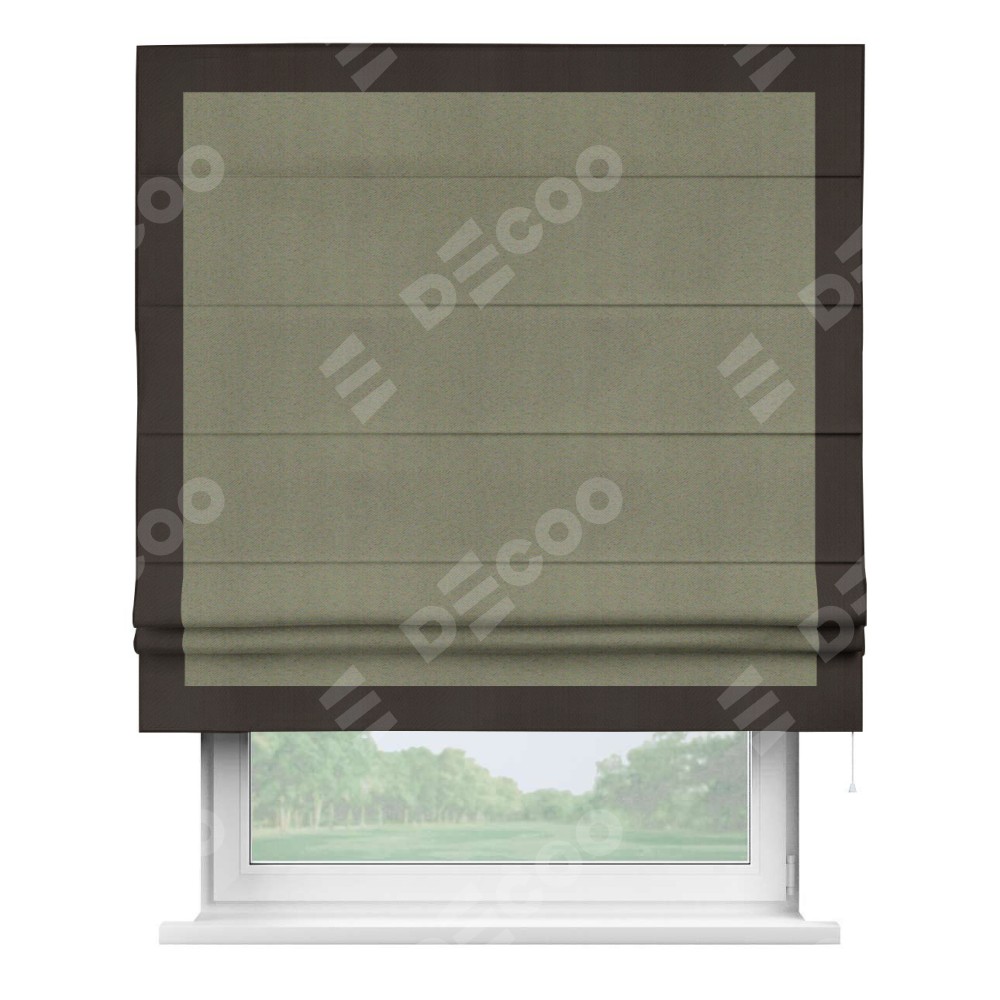 Римская штора «Кортин» с кантом Чесс, для проема, ткань блэкаут однотонный серо-коричневый