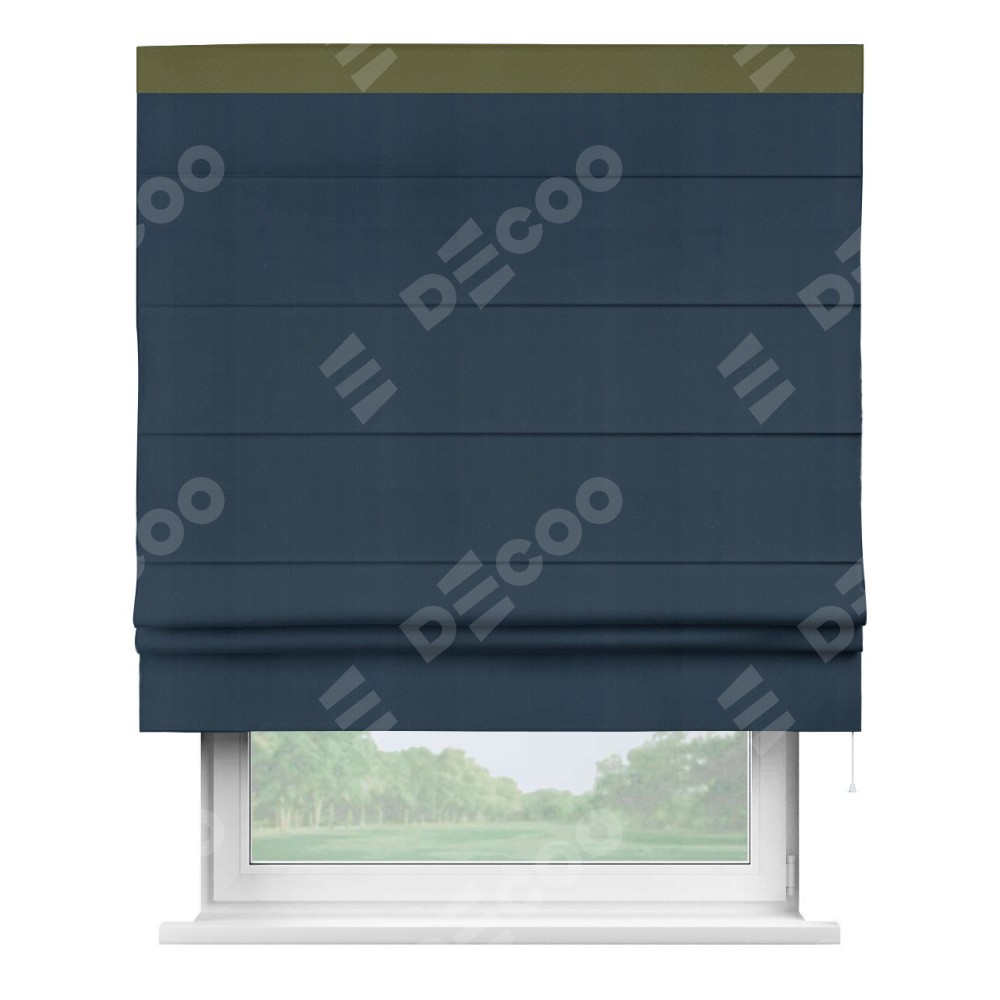 Римская штора производителя «Cortin», используется для проёма, пошита из ткани блэкаут однотонный синий, артикул ткани 29327. Отделка шторы кантом «Кинг», ткань для канта используется из блэкаута однотонного разной расцветки на выбор. Имеет универсальный механизм и подходит для монтажа: на потолок, на стену и в нишу.