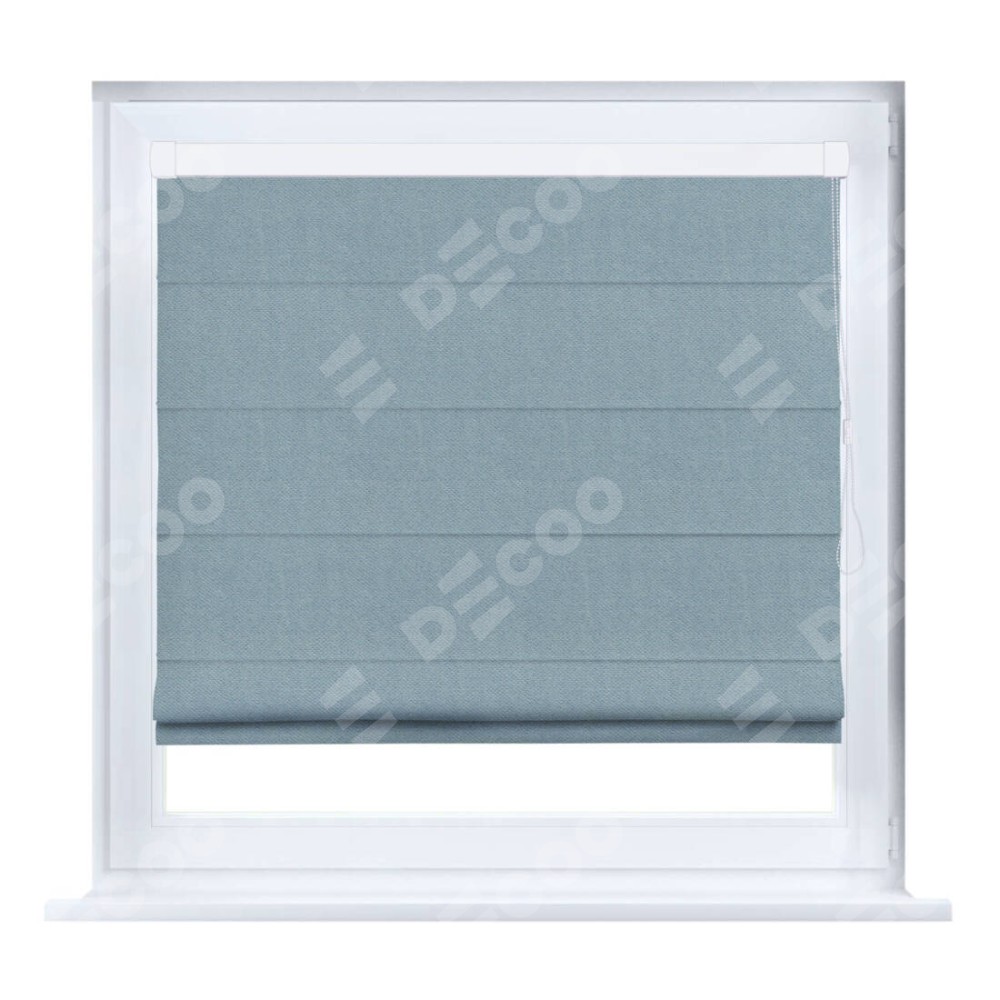 Римская штора производителя «Cortin», устанавливается на створку окна, пошита из ткани блэкаут тиснение с блеском синий, артикул 34632. Изнаночная сторона материала черного цвета, что обеспечивает необходимую светонепроницаемость. Штора шьётся по индивидуальным размерам, для данного типа римской шторы возможная ширина от 35 до 150 см., высота до 250 см.