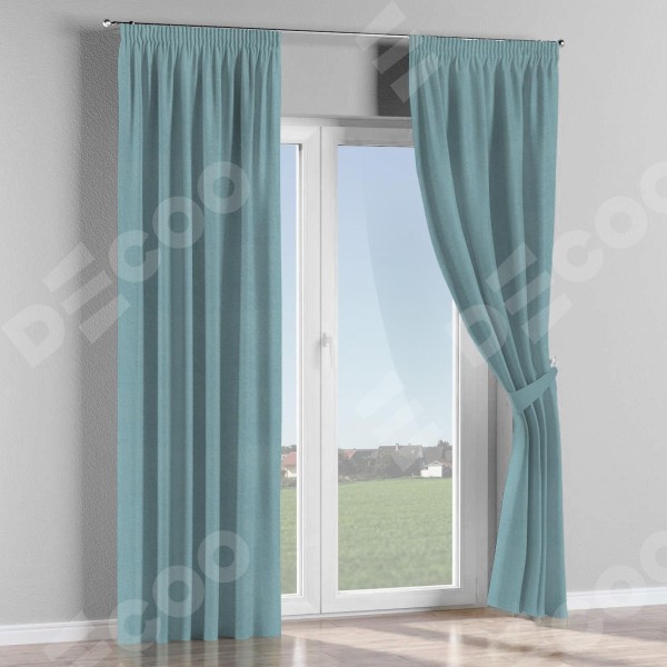 Комплект прямых штор, от производителя «Cortin», пошиты из ткани блэкаут с блеском синий, артикул ткани 34625. С изнаночной стороны в верхней части штор пристрачивается шторная лента с декоративными складками «Карандаш». Обратная сторона основного материала черного цвета, что обеспечивает необходимую светонепроницаемость. Для создания элегантных складок прямые шторы шьются по стандарту с коэффициентом 1:2 (на 100 см. ширины проёма 200 см. ширины ткани).