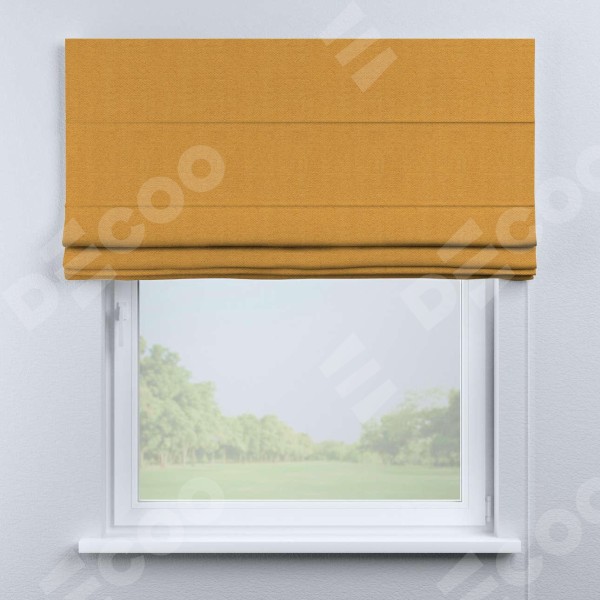 Римская штора производителя «Cortin», используется для проёма, пошита из ткани блэкаут тиснение с блеском золотой, артикул ткани 34626. Изнаночная сторона материала черного цвета, что обеспечивает необходимую светонепроницаемость. Имеет универсальный механизм и подходит для монтажа: на потолок, на стену и в нишу.