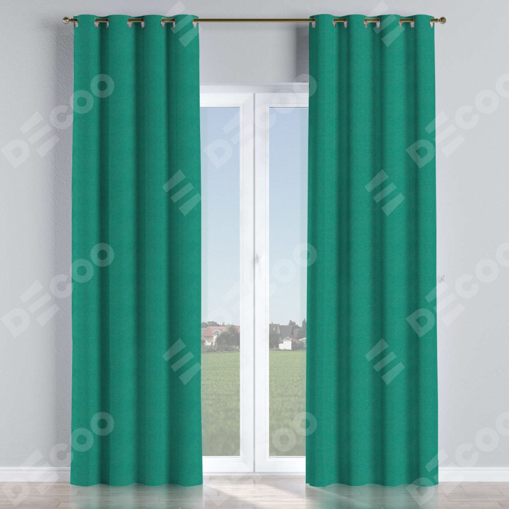 Комплект прямых штор, от производителя «Cortin», пошиты из ткани блэкаут с блеском изумрудный, артикул ткани 34628. Обратная сторона основного материала черного цвета, что обеспечивает необходимую светонепроницаемость. Данная модель пошита на люверсах, комплектуется на выбор круглым карнизом и подходит для монтажа на стену или потолок. Прямые шторы на люверсах шьются по стандарту с коэффициентом 1/2 (на 100 см. ширины проёма 200 см. ширины ткани), отличительным преимуществом данной модели является простой способ монтажа. Достаточно повесить ее на трубу и штора готова!
