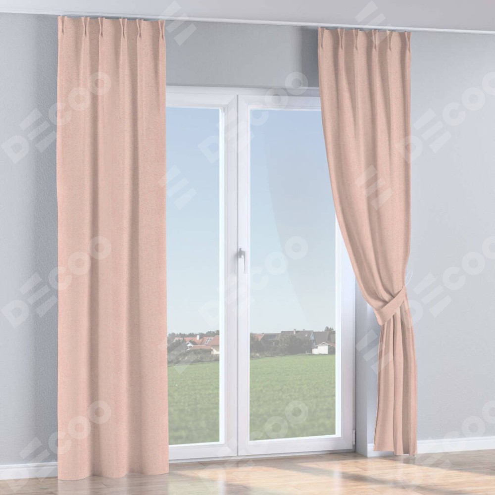 Комплект прямых штор, от производителя «Cortin», пошиты из ткани блэкаут с блеском сиреневый, артикул ткани 34649. С изнаночной стороны в верхней части штор пристрачивается шторная лента с декоративными складками «Кустик». Обратная сторона основного материала черного цвета, что обеспечивает необходимую светонепроницаемость. Для создания элегантных складок прямые шторы шьются по стандарту с коэффициентом 1:2 (на 100 см. ширины проёма 200 см. ширины ткани).