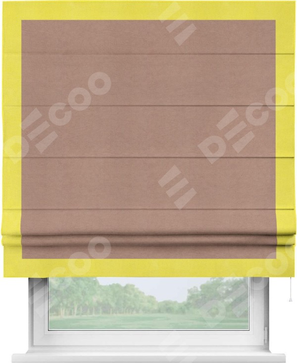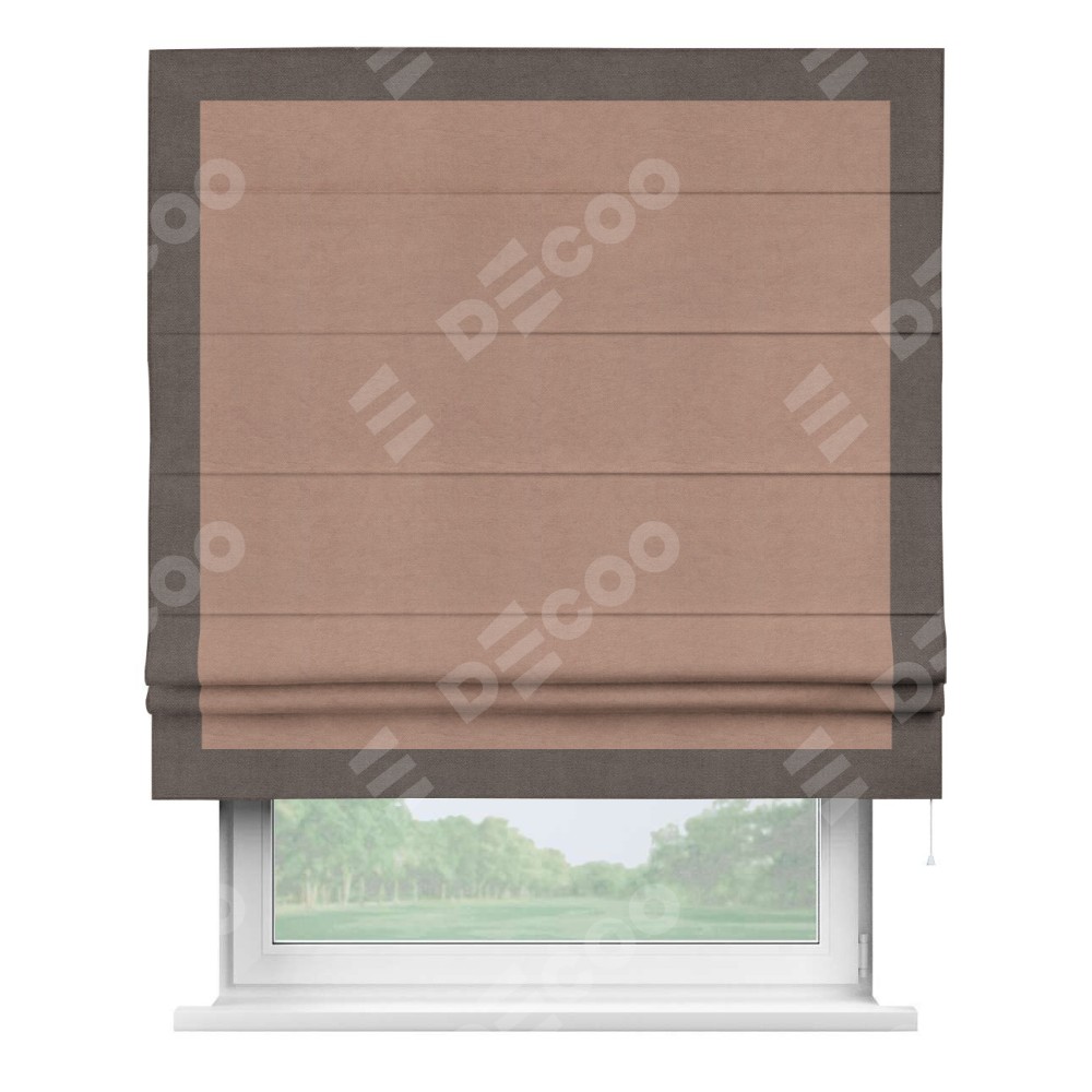 Римская штора «Кортин» с кантом Чесс, для проема, ткань вельвет брусничный джем