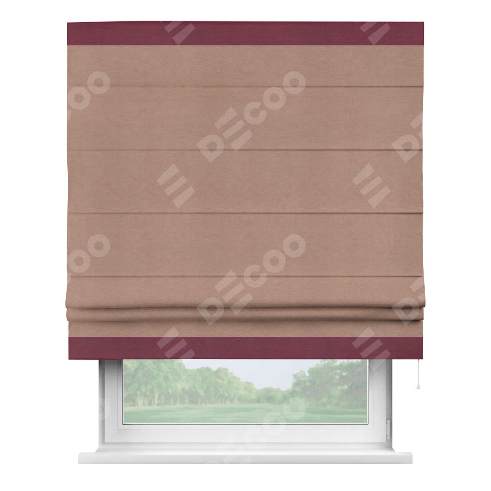 Римская штора «Кортин» с кантом Горизонт, для проема, ткань вельвет брусничный джем