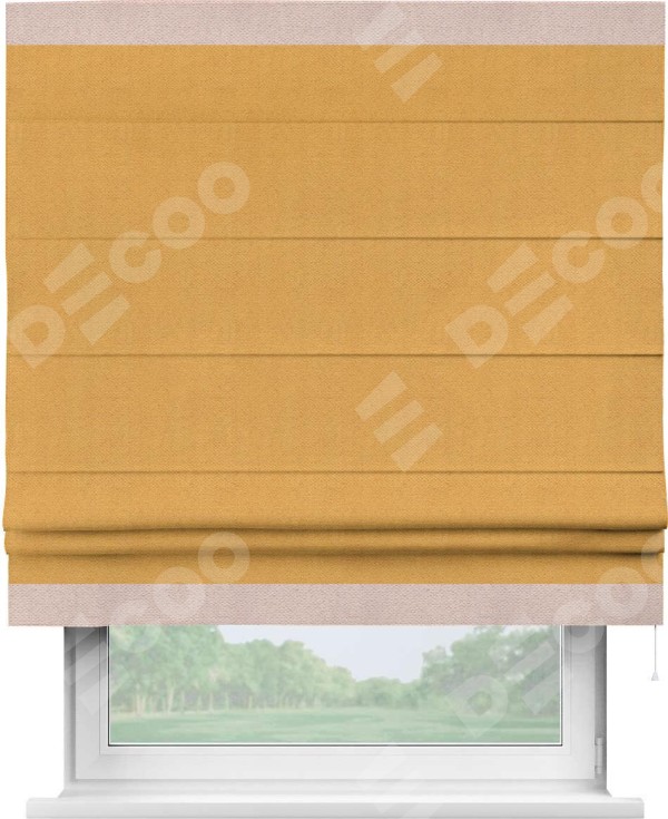 Римская штора «Кортин» с кантом Горизонт, для проема, ткань блэкаут с блеском золотой