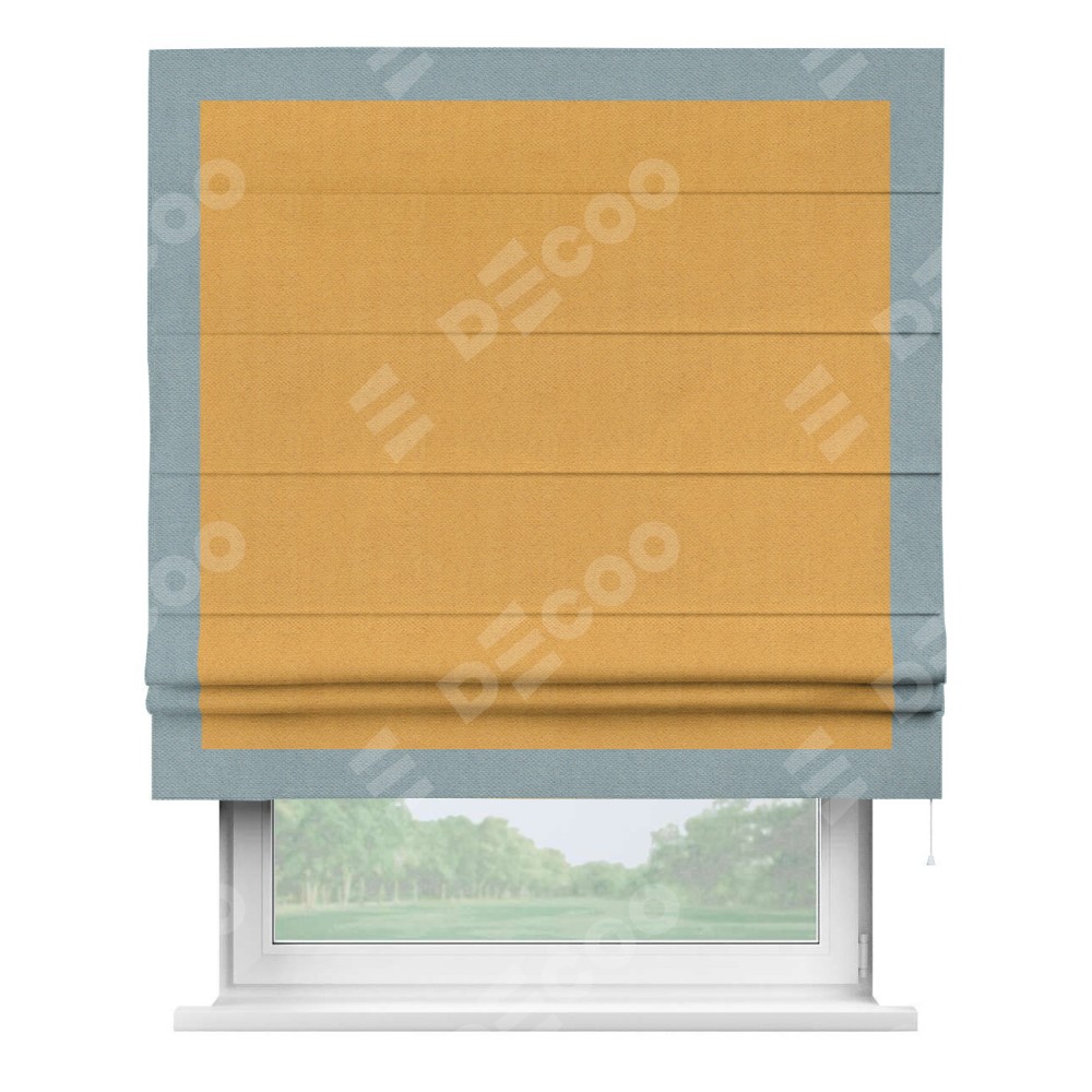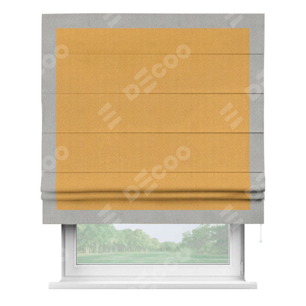Римская штора «Кортин» с кантом Чесс, для проема, ткань блэкаут с блеском золотой