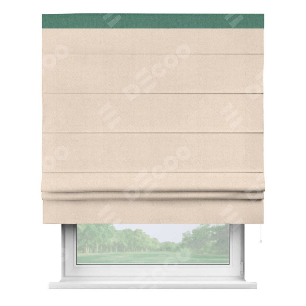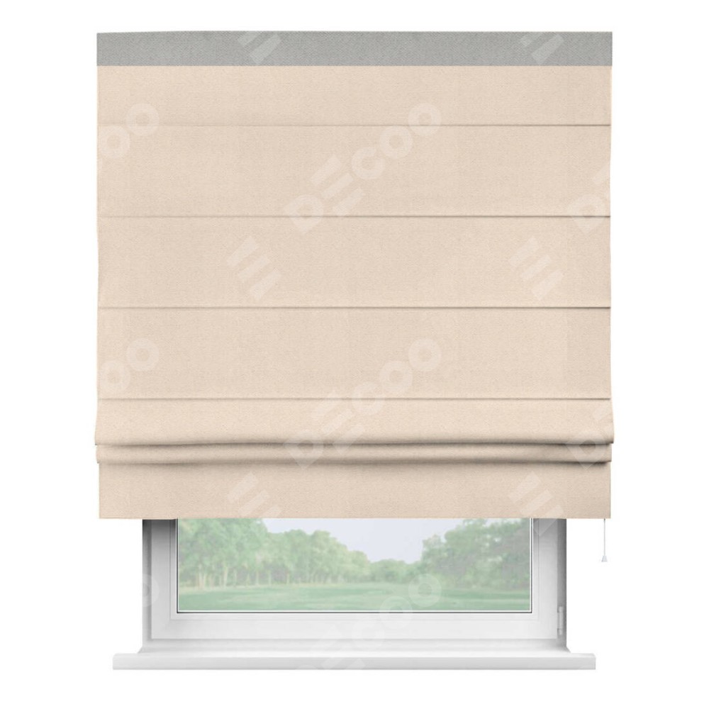 Римская штора производителя «Cortin», используется для проёма, пошита из ткани блэкаут с блеском розовая пудра, артикул 34632. Отделка шторы кантом «Кинг», ткань для канта используется из блэкаута с блеском разной расцветки на выбор. Изнаночная сторона материала черного цвета, что обеспечивает необходимую светонепроницаемость. Имеет универсальный механизм и подходит для монтажа: на потолок, на стену и в нишу.