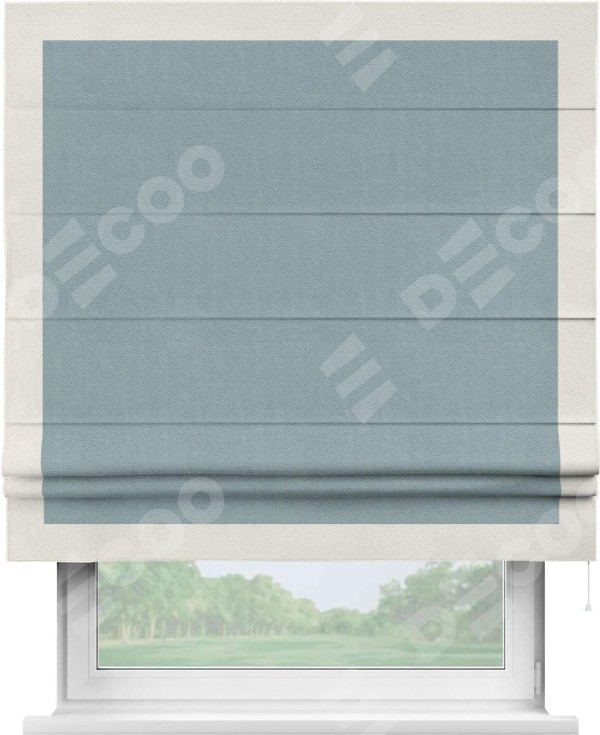 Римская штора «Кортин» с кантом Чесс, для проема, ткань блэкаут с блеском синий
