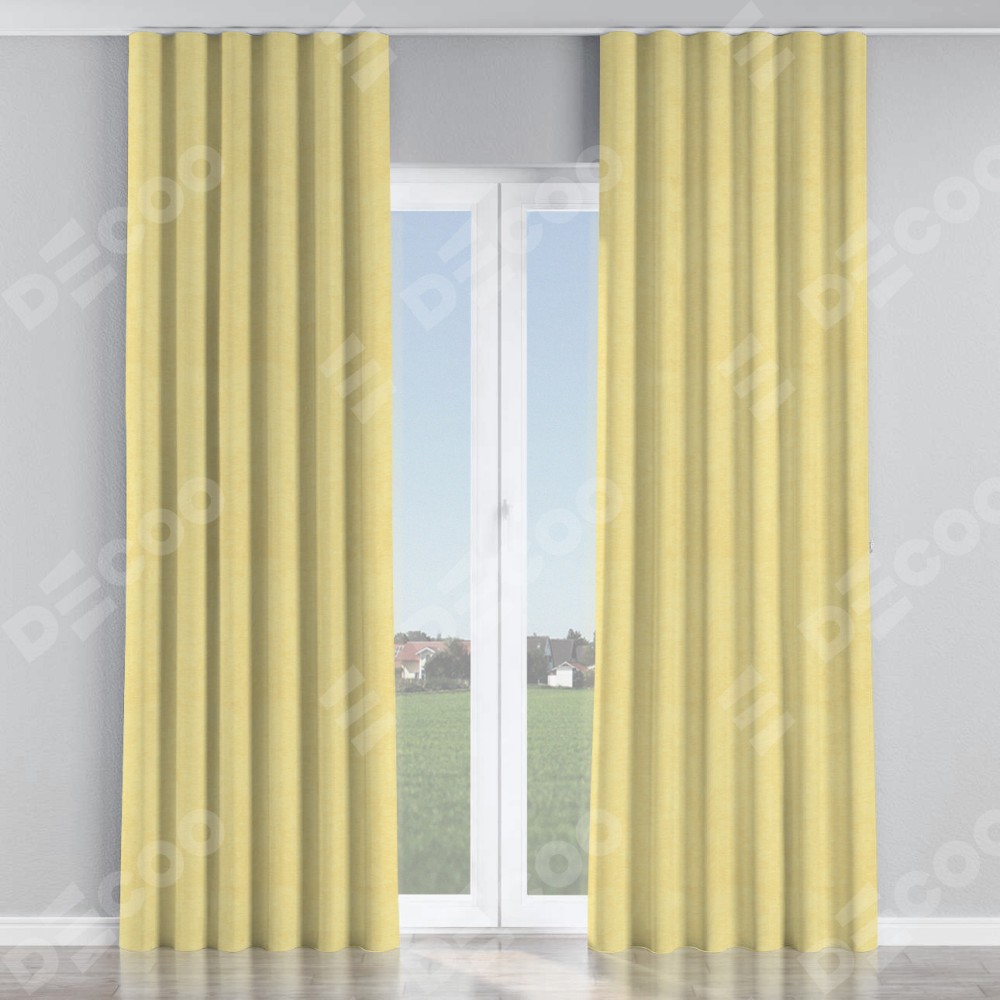 Комплект прямых штор, от производителя «Cortin», пошиты из ткани софт однотонный золотой, артикул ткани 42934. С изнаночной стороны в верхней части штор пристрачивается шторная лента с декоративными складками «Волна». Для создания элегантных складок прямые шторы шьются по стандарту с коэффициентом 1:2 (на 100 см. ширины проёма 200 см. ширины ткани).