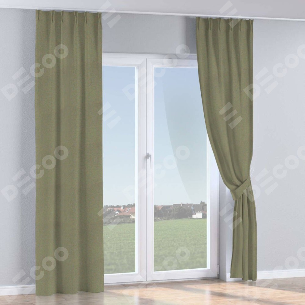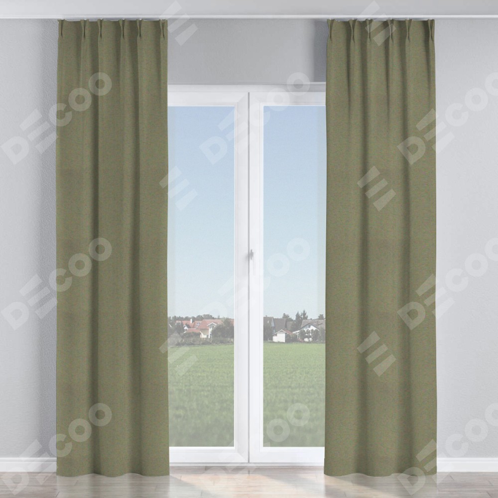 Комплект прямых штор, от производителя «Cortin», пошиты из ткани блэкаут однотонный серо-коричневый, артикул ткани 29568. С изнаночной стороны в верхней части штор пристрачивается шторная лента с декоративными складками «Кустик». Для создания элегантных складок прямые шторы шьются по стандарту с коэффициентом 1:2 (на 100 см. ширины проёма 200 см. ширины ткани).