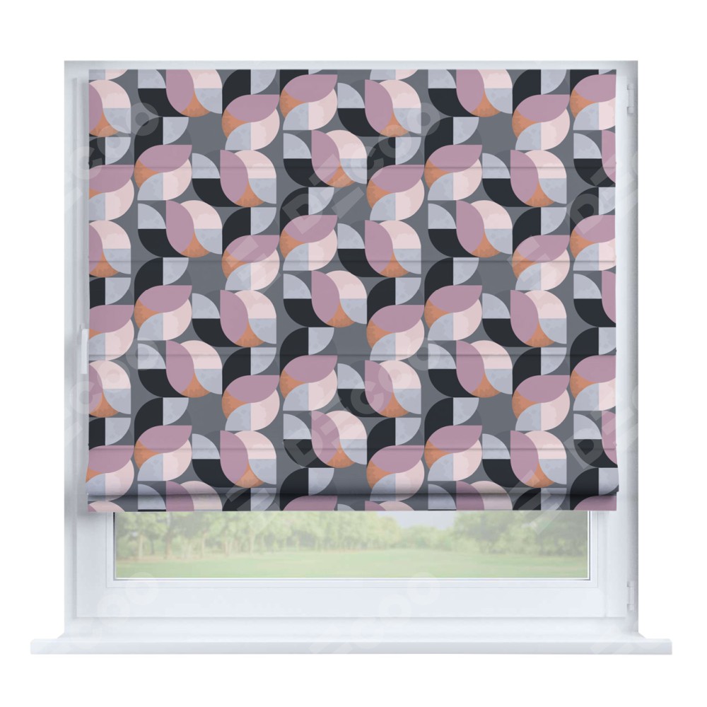 Римская штора производителя «Cortin», устанавливается на створку окна, пошита из ткани блэкаут с нанесением сублимационной печати «Абстрактный узор». Штора шьётся по индивидуальным размерам, для данного типа римской шторы возможная ширина от 35 до 150 см., высота до 250 см.