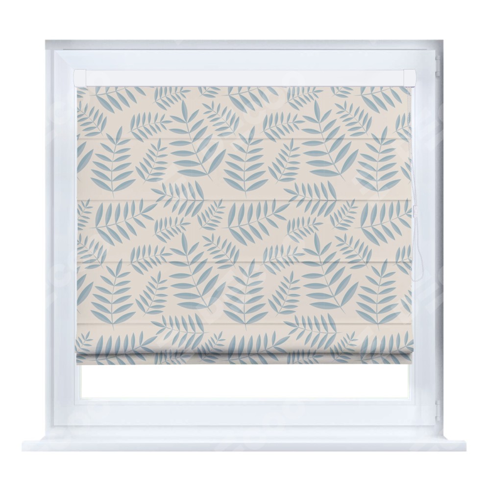 Римская штора производителя «Cortin», устанавливается на створку окна, пошита из ткани блэкаут с нанесением сублимационной печати «Веточка с листочками». Штора шьётся по индивидуальным размерам, для данного типа римской шторы возможная ширина от 35 до 150 см., высота до 250 см.