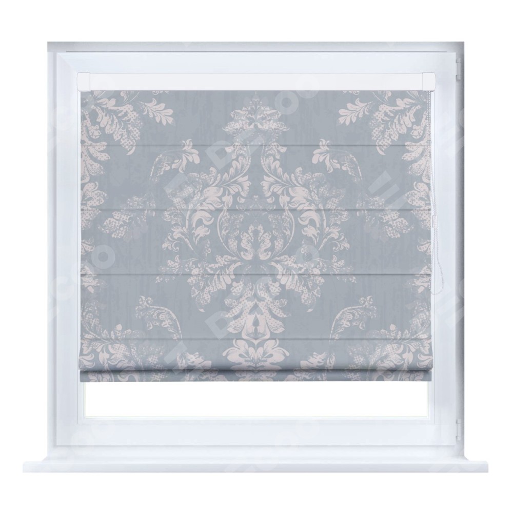 Римская штора производителя «Cortin», устанавливается на створку окна, пошита из ткани блэкаут с нанесением сублимационной печати «Винтажный узор серый». Штора шьётся по индивидуальным размерам, для данного типа римской шторы возможная ширина от 35 до 150 см., высота до 250 см.