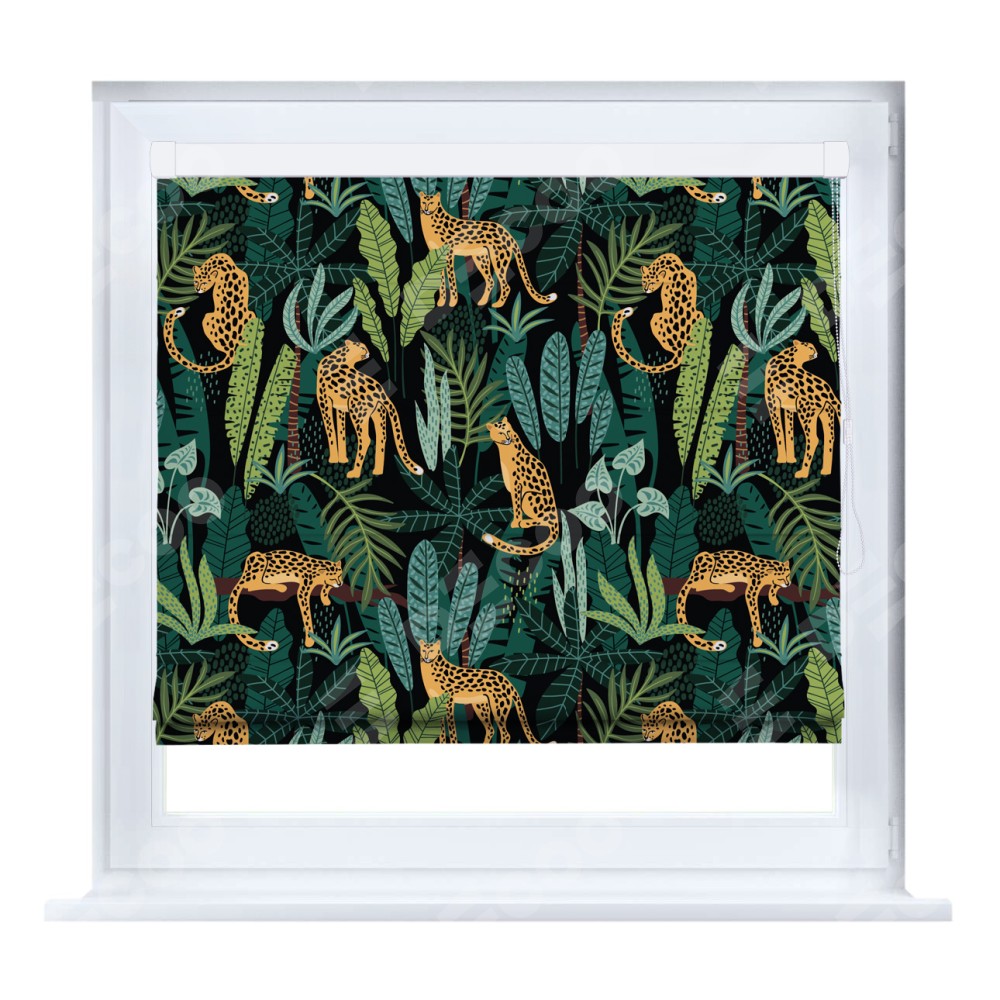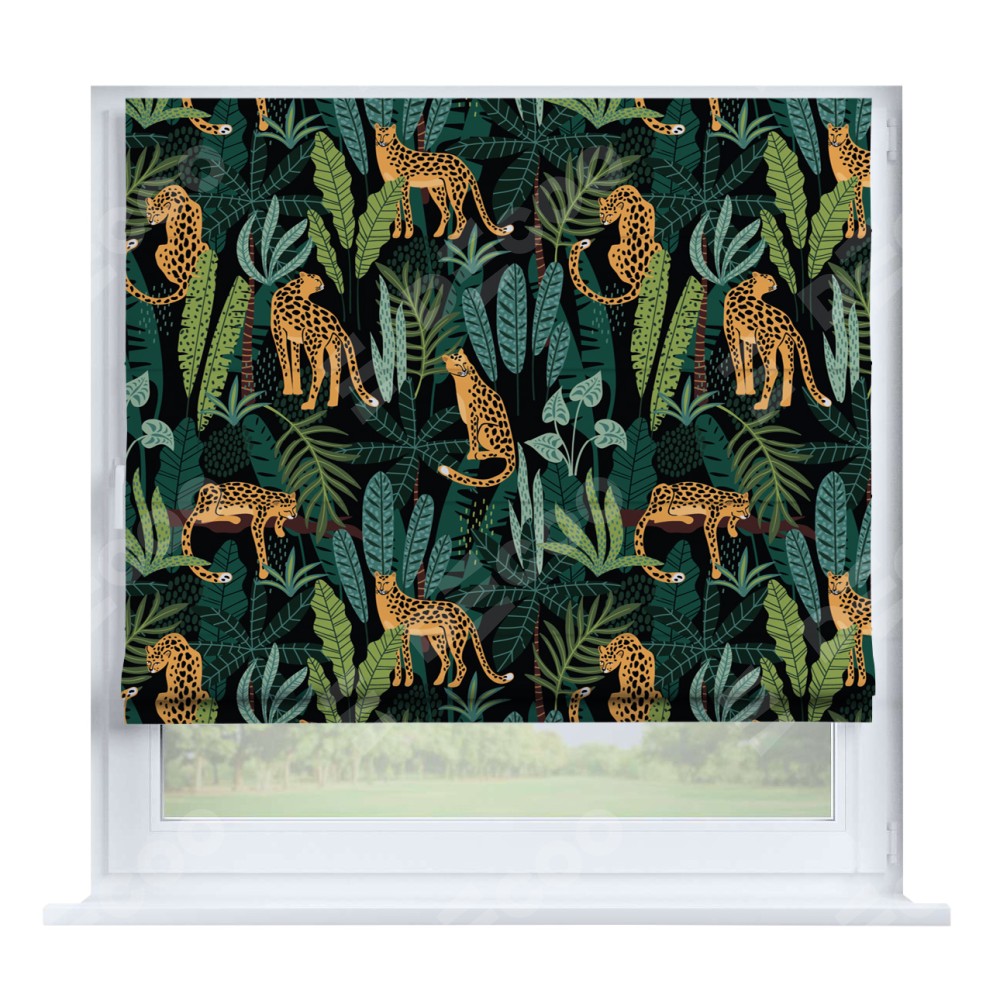 Римская штора «Кортин» на створку «Леопарды в джунглях»