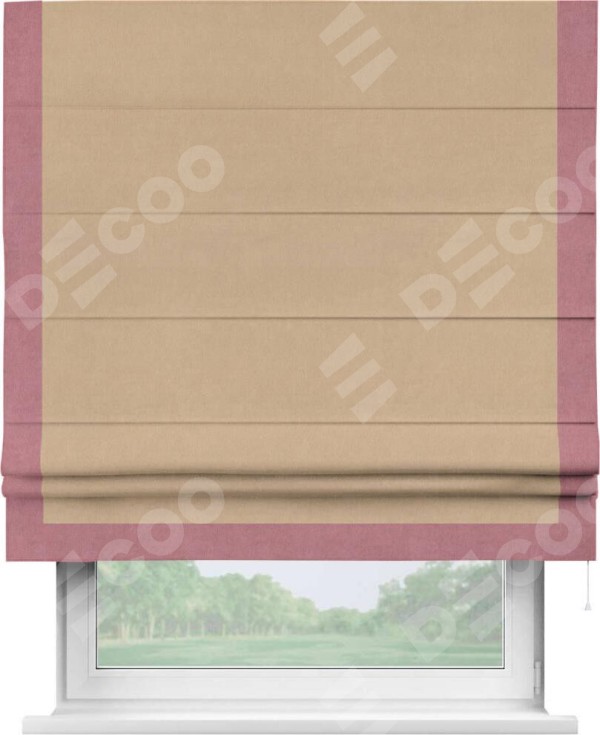 Римская штора «Кортин» с кантом Виктория, для проема, ткань вельвет песочный