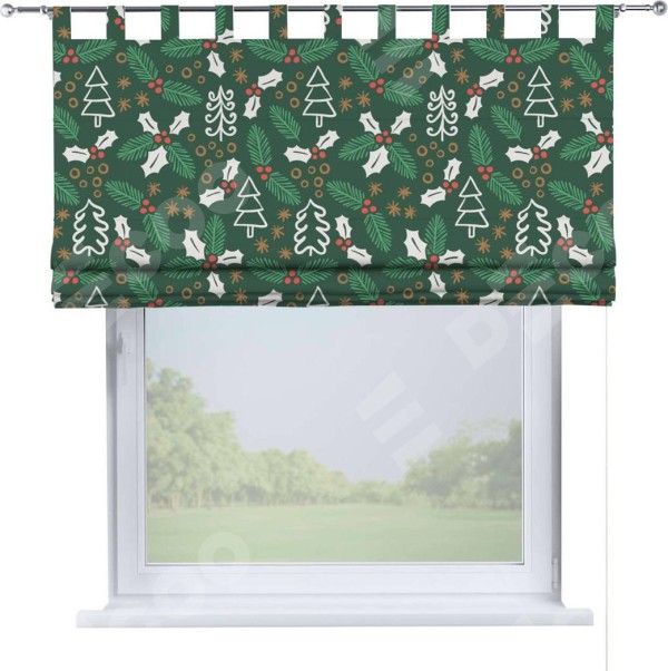 Римская штора производителя «Cortin», используется для проёма, пошита из ткани блэкаут с нанесением сублимационной печати «Рождественский узор». Данная модель пошита на петлях, комплектуется на выбор круглым карнизом и подходит для монтажа на стену. Римская штора на петлях имеет простую систему регулировки высоты, отличительным преимуществом данной модели является простой способ монтажа. Достаточно повесить ее на трубу и штора готова!