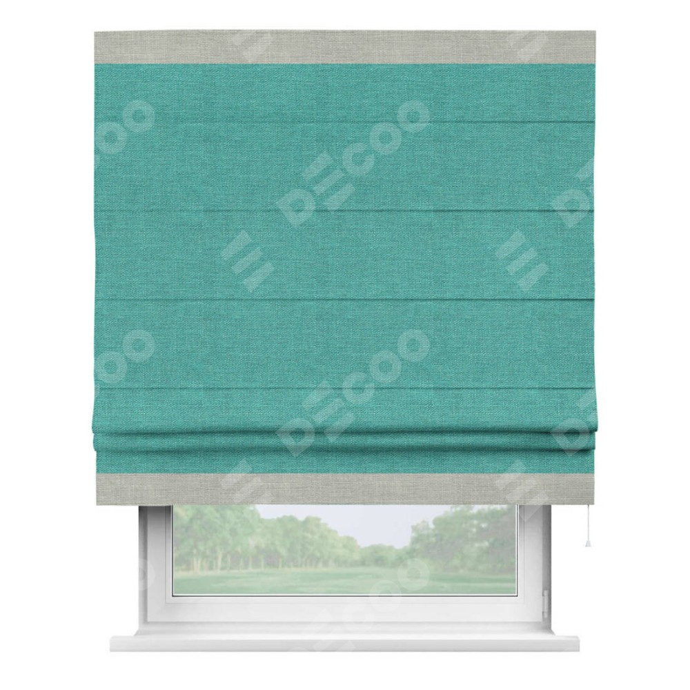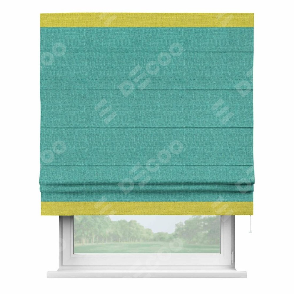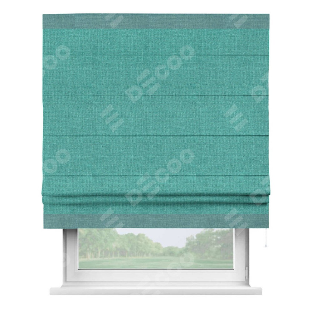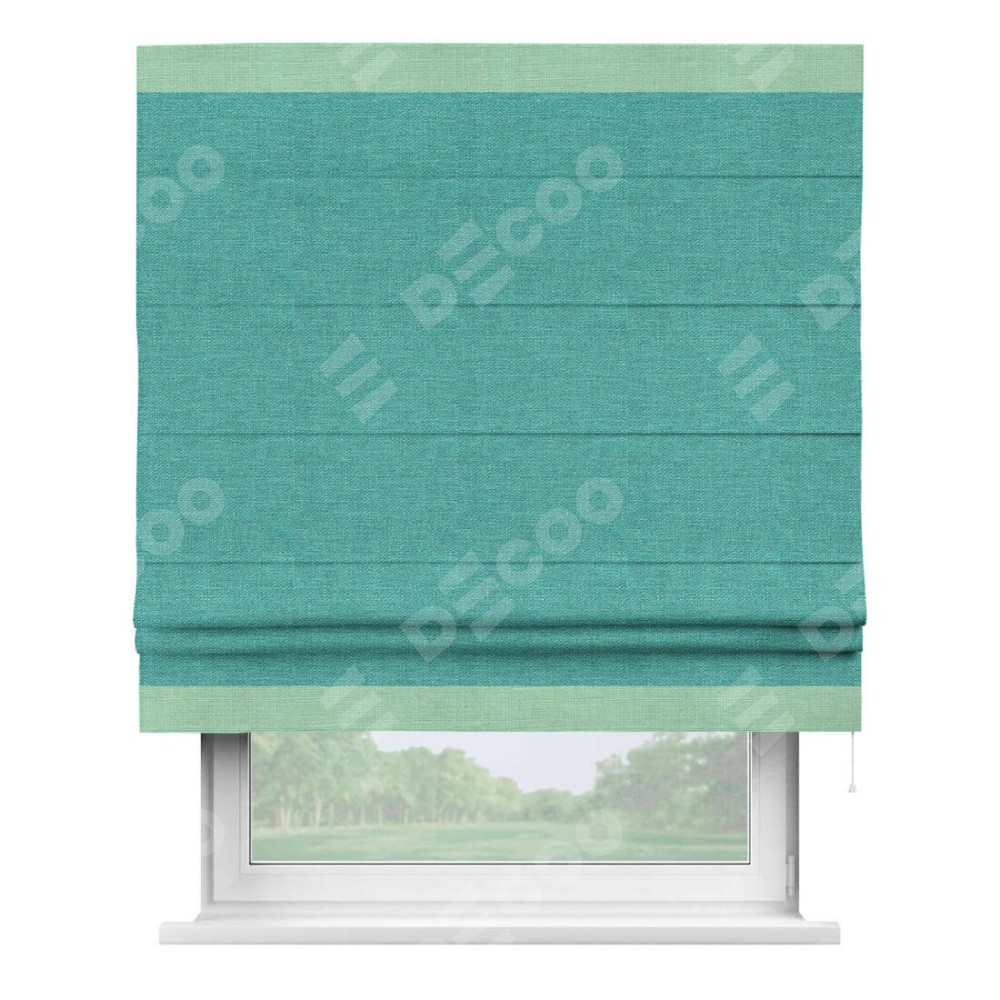 Римская штора «Кортин» с кантом Горизонт, для проема, ткань лён изумрудный