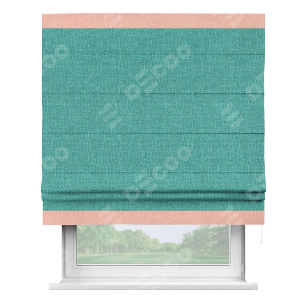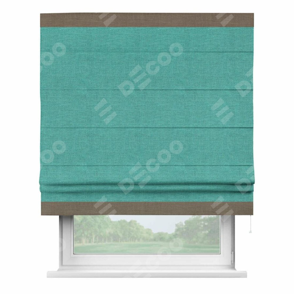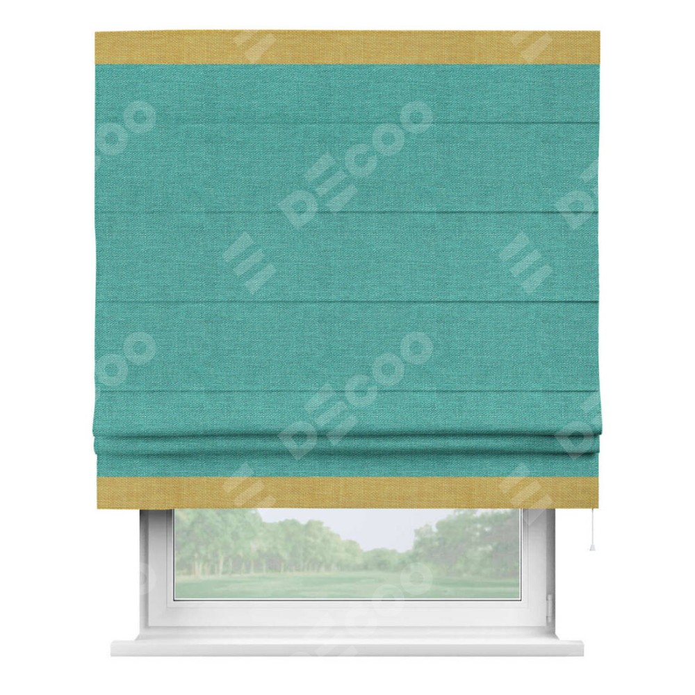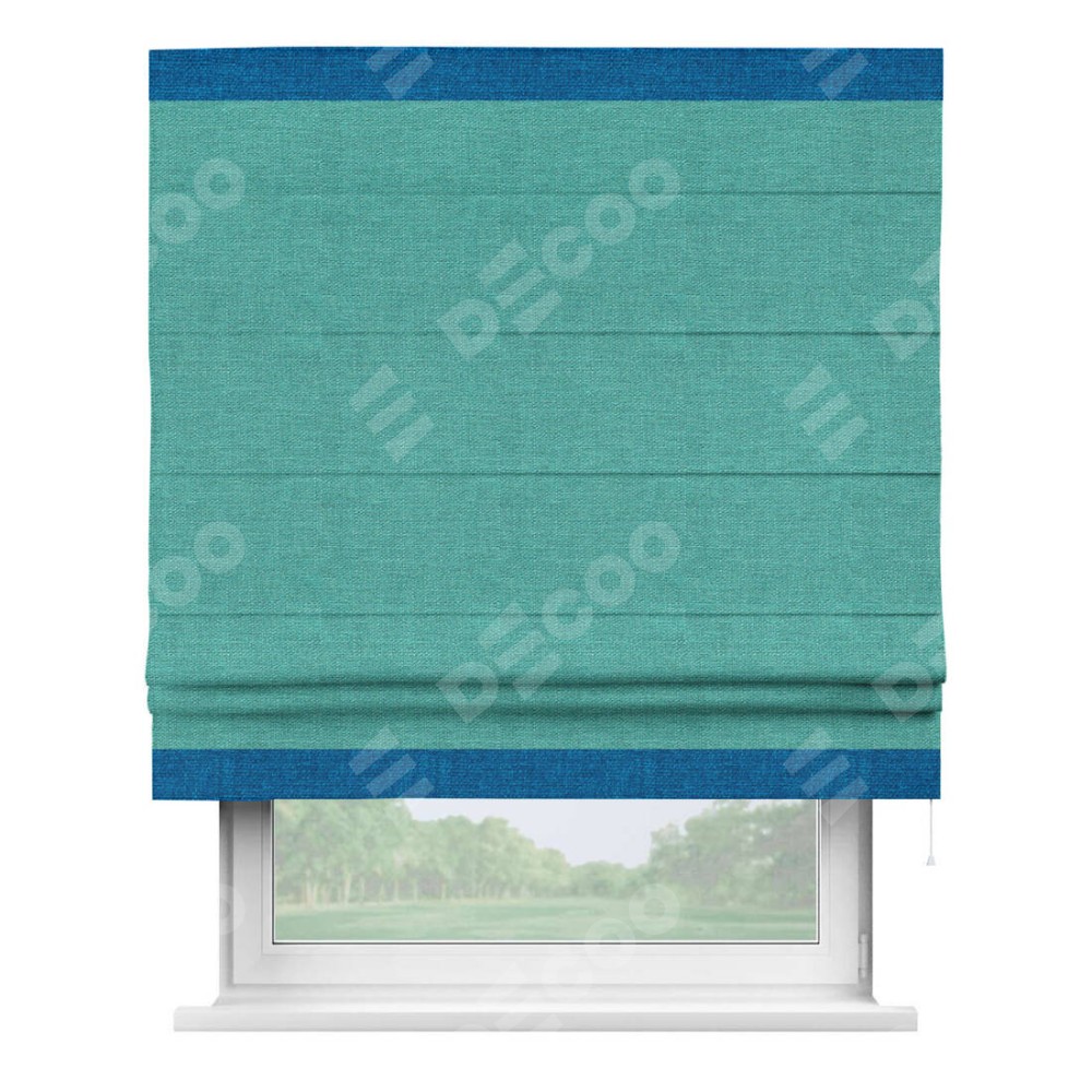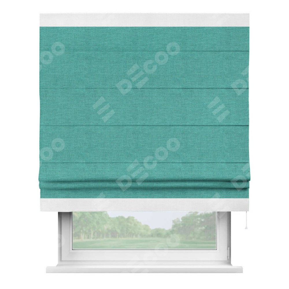 Римская штора «Кортин» с кантом Горизонт, для проема, ткань лён изумрудный