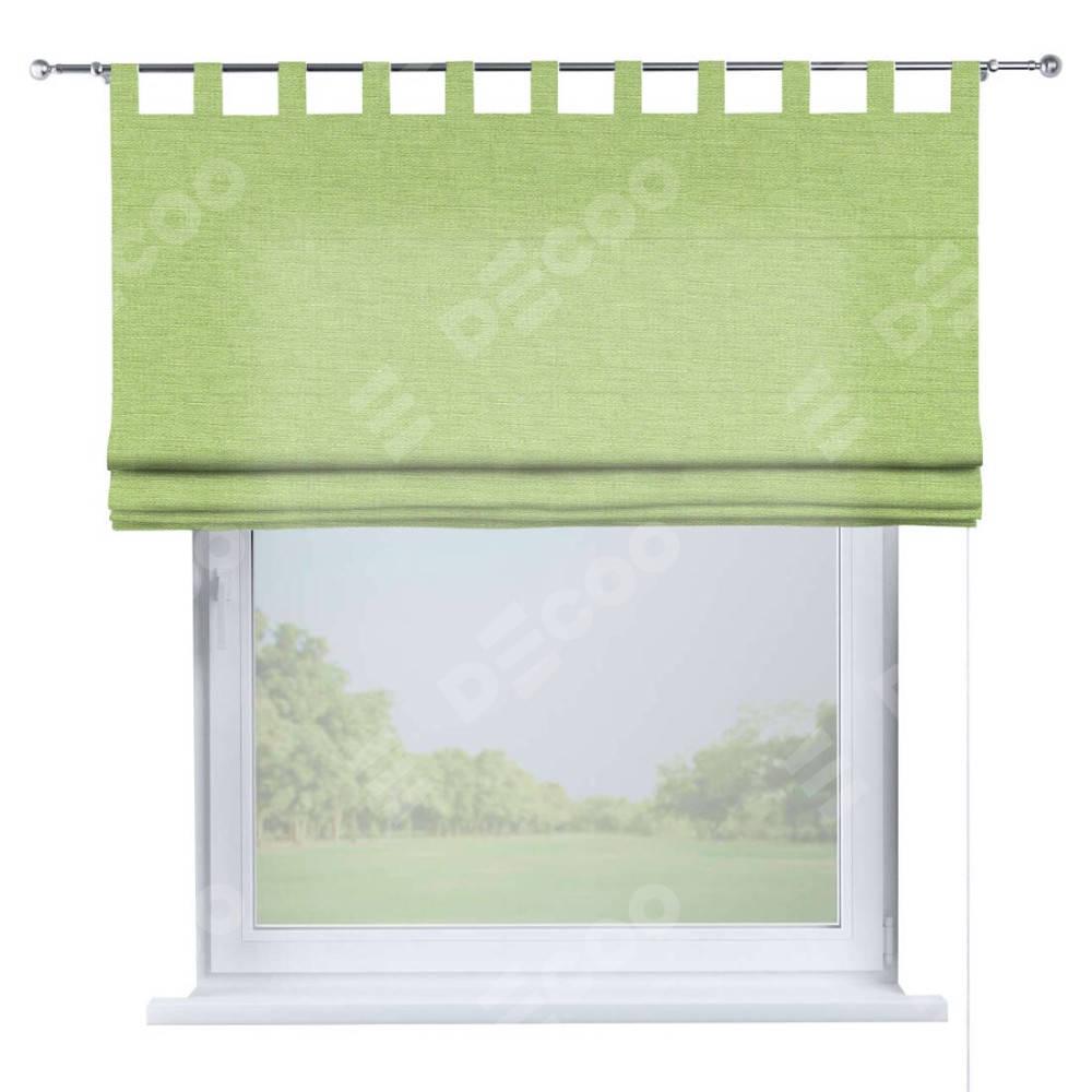 Римская штора производителя «Cortin», используется для проёма, пошита из ткани лён зеленый, артикул ткани 85906. Данная модель пошита на петлях, комплектуется на выбор круглым карнизом и подходит для монтажа на стену. Римская штора на петлях имеет простую систему регулировки высоты, отличительным преимуществом данной модели является простой способ монтажа. Достаточно повесить ее на трубу и штора готова!