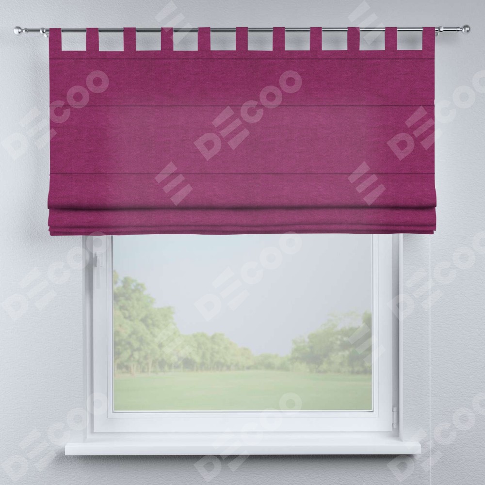 Римская штора производителя «Cortin», используется для проёма, пошита из ткани вельвет фиолетовый, артикул ткани 85552. Данная модель пошита на петлях, комплектуется на выбор круглым карнизом и подходит для монтажа на стену. Римская штора на петлях имеет простую систему регулировки высоты, отличительным преимуществом данной модели является простой способ монтажа. Достаточно повесить ее на трубу и штора готова!