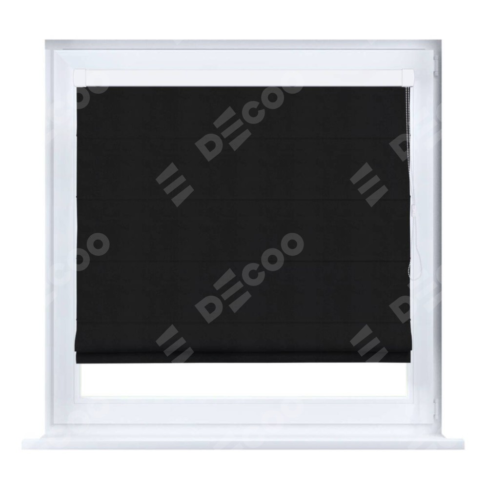Римская штора производителя «Cortin», устанавливается на створку окна, пошита из ткани блэкаут однотонный черный, артикул 79904. Штора шьётся по индивидуальным размерам, для данного типа римской шторы возможная ширина от 35 до 150 см., высота до 250 см.