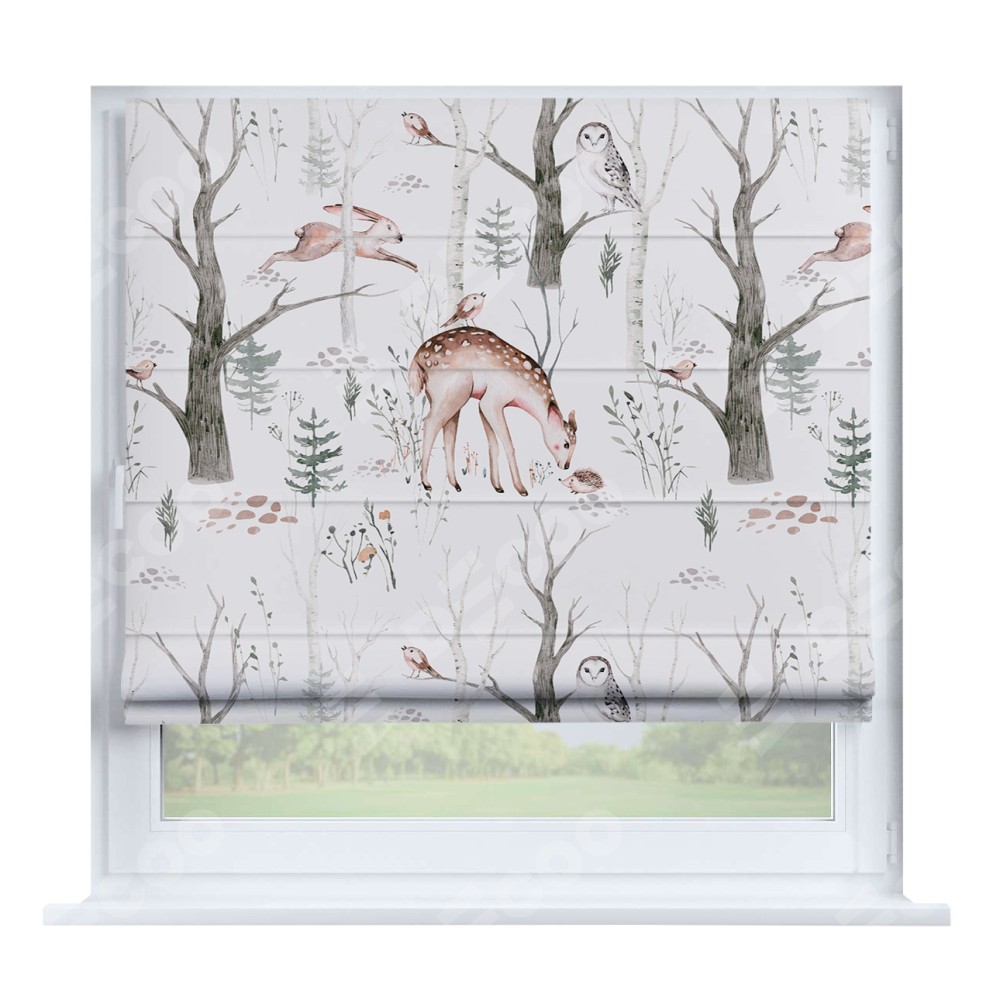 Римская штора производителя «Cortin», устанавливается на створку окна, пошита из ткани блэкаут с нанесением сублимационной печати «Скандинавский питомник». Штора шьётся по индивидуальным размерам, для данного типа римской шторы возможная ширина от 35 до 150 см., высота до 250 см.