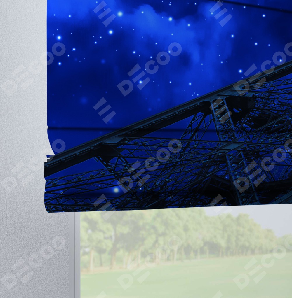 Римская штора производителя «Cortin», используется для проёма, пошита из ткани блэкаут с нанесением сублимационной печати «Ночь в Париже». Данная модель пошита на петлях, комплектуется на выбор круглым карнизом и подходит для монтажа на стену. Римская штора на петлях имеет простую систему регулировки высоты, отличительным преимуществом данной модели является простой способ монтажа. Достаточно повесить ее на трубу и штора готова!