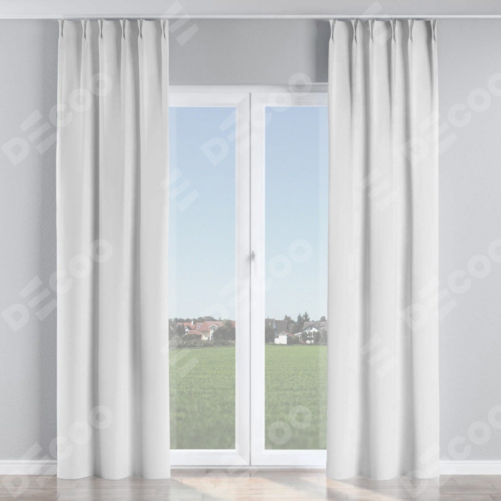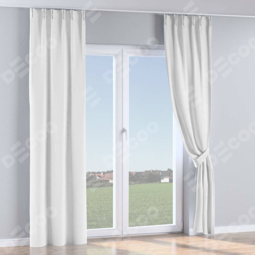 Комплект прямых штор, от производителя «Cortin», пошиты из ткани лён белоснежный, артикул ткани 7438. С изнаночной стороны в верхней части штор пристрачивается шторная лента с декоративными складками «Кустик». Для создания элегантных складок прямые шторы шьются по стандарту с коэффициентом 1:2 (на 100 см. ширины проёма 200 см. ширины ткани).
