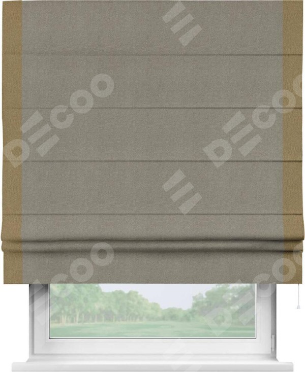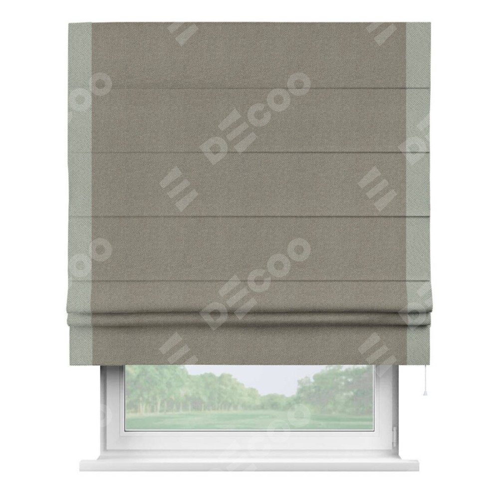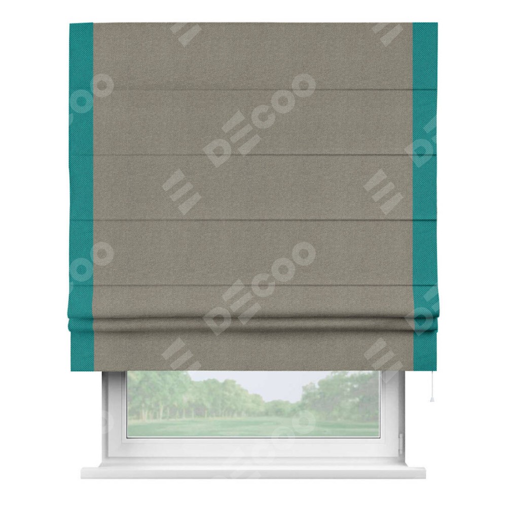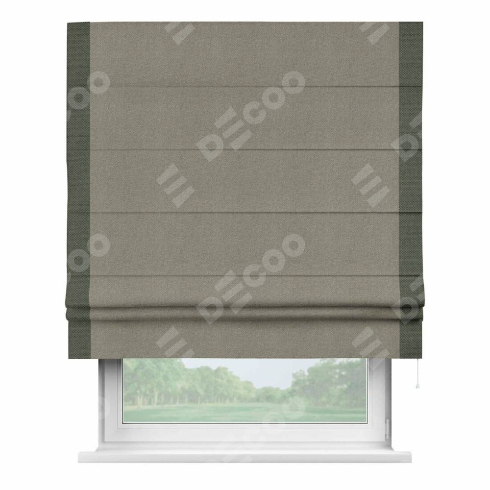 Римская штора «Кортин» с кантом Стрим Дуо, для проема, ткань лён димаут, серо-зелёный