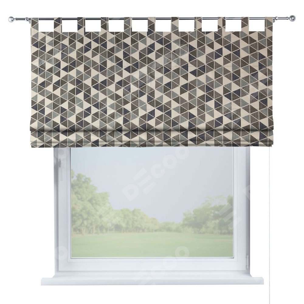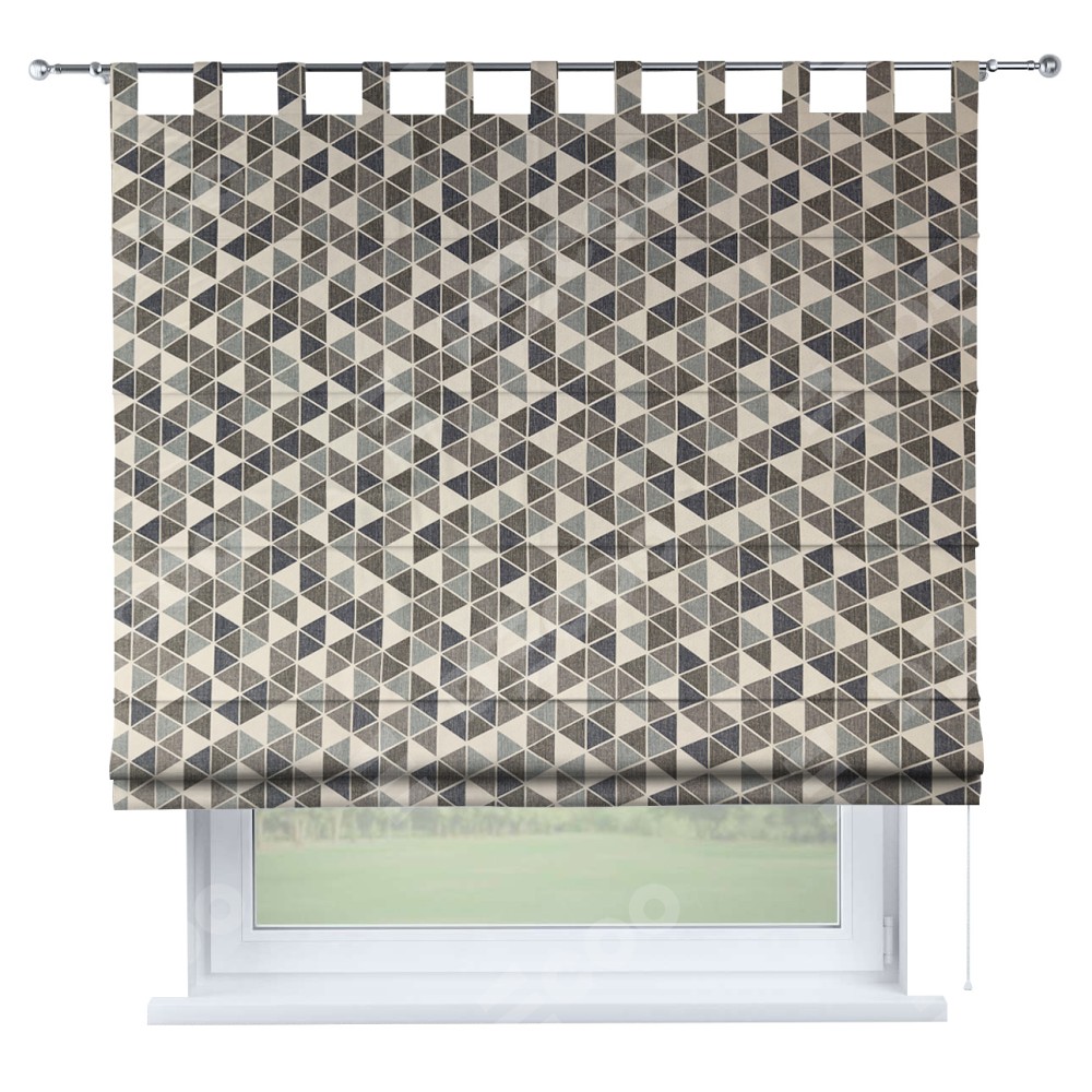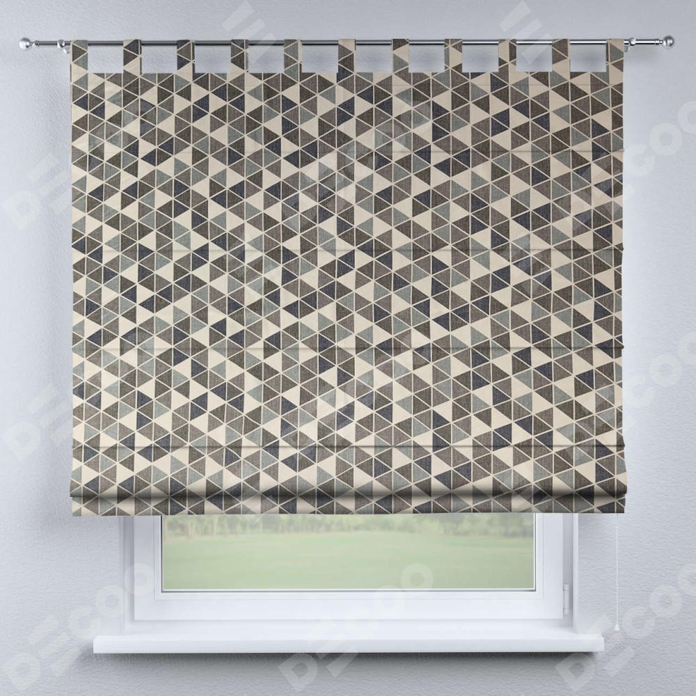 Римская штора на петлях «Кортин», ткань димаут «Треугольники синие»