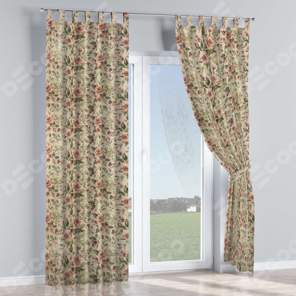 Комплект прямых штор, от производителя «Cortin», пошиты из ткани «Розы бежевые», артикул ткани 34564. Данная модель пошита на петлях, комплектуется на выбор круглым карнизом и подходит для монтажа на стену или потолок. Прямые шторы на петлях шьются по стандарту с коэффициентом 1/2 (на 100 см. ширины проёма 200 см. ширины ткани), отличительным преимуществом данной модели является простой способ монтажа. Достаточно повесить ее на трубу и штора готова!