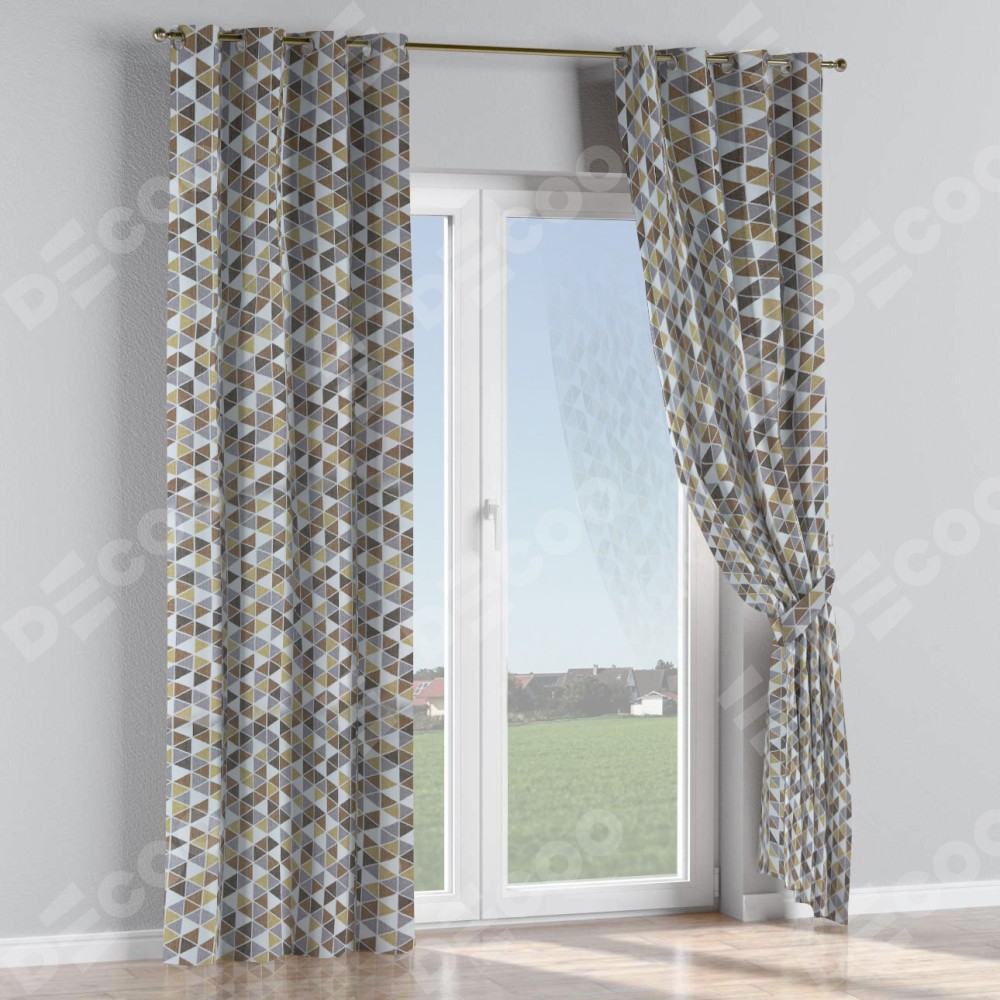 Комплект прямых штор, от производителя «Cortin», пошиты из ткани димаут «Треугольники коричневые», артикул ткани 23021. Данная модель пошита на люверсах, комплектуется на выбор круглым карнизом и подходит для монтажа на стену или потолок. Прямые шторы на люверсах шьются по стандарту с коэффициентом 1/2 (на 100 см. ширины проёма 200 см. ширины ткани), отличительным преимуществом данной модели является простой способ монтажа. Достаточно повесить ее на трубу и штора готова!