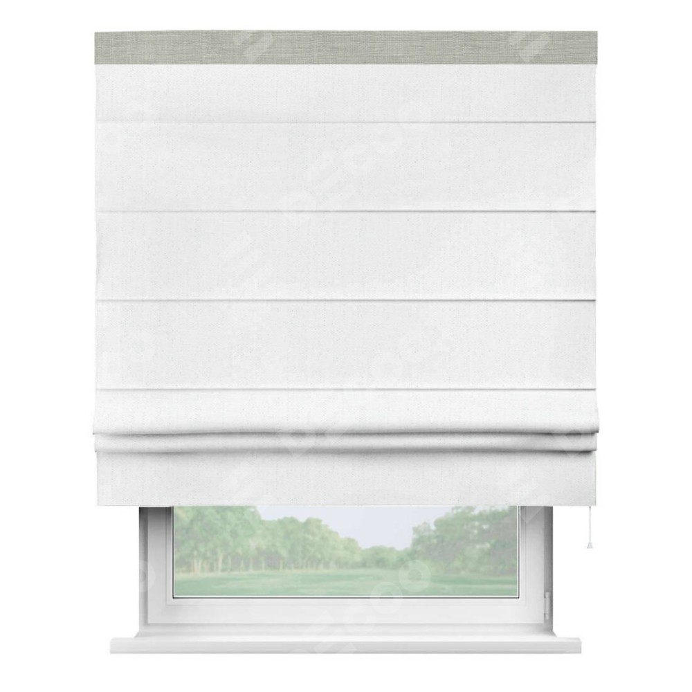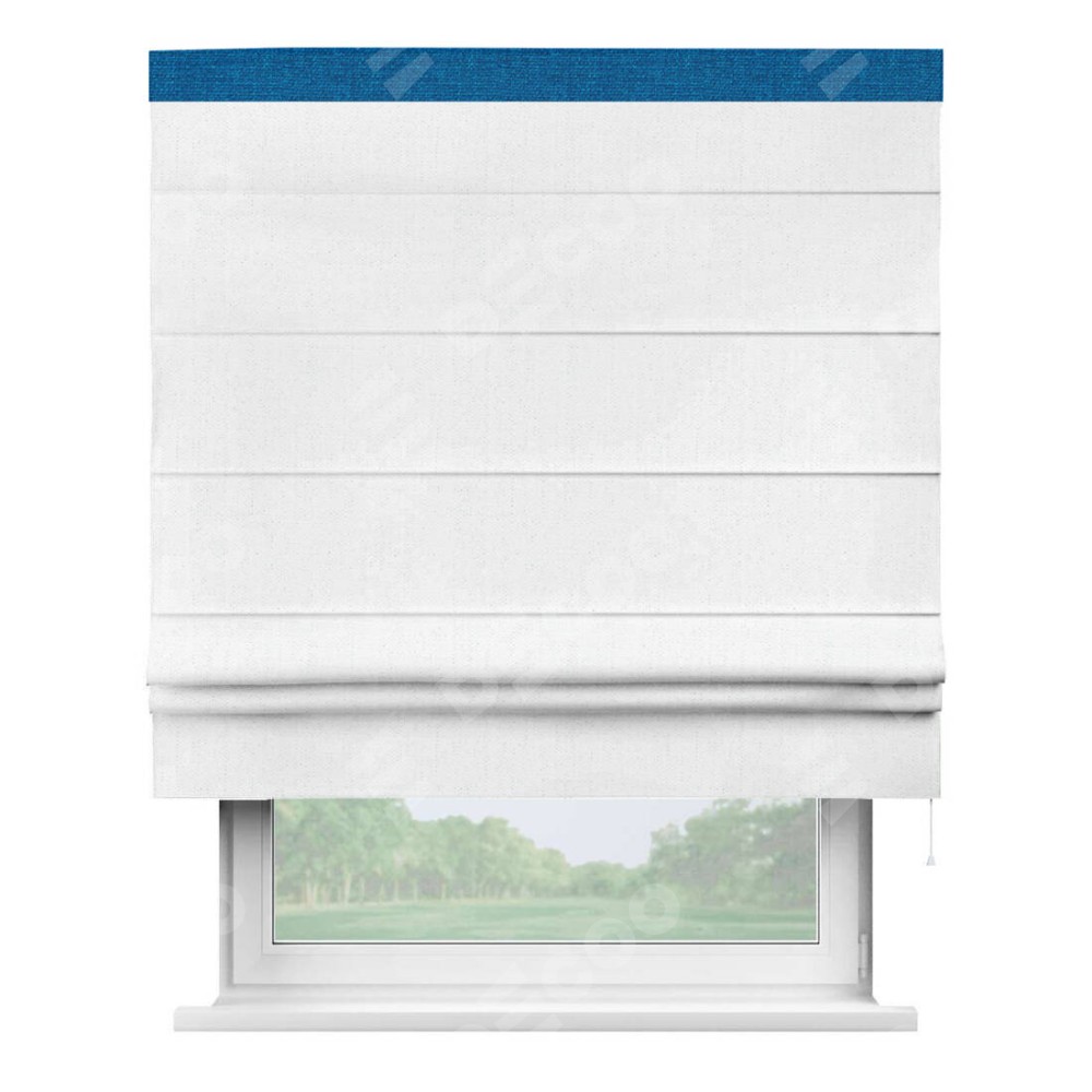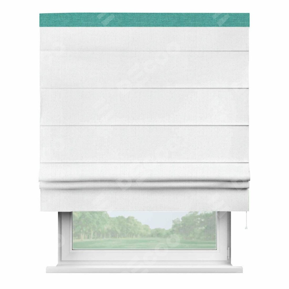 Римская штора производителя «Cortin», используется для проёма, пошита из ткани лён белоснежный, артикул 7438. Отделка шторы кантом «Кинг», ткань для канта используется из льна разной расцветки на выбор. Имеет универсальный механизм и подходит для монтажа: на потолок, на стену и в нишу.