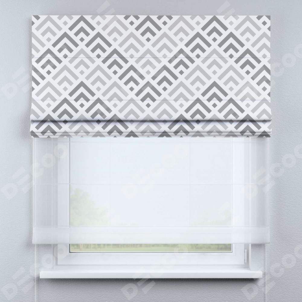 Римская штора день-ночь производителя «Cortin», используется для проёма, пошита из двух полотен, с лицевой блэкаут с нанесением сублимационной печати «Пространство», вторая ткань тюль (по стандарту комплектуется тюль белого цвета артикул V-01). Имеет универсальный механизм и подходит для монтажа: на потолок, на стену и в нишу.