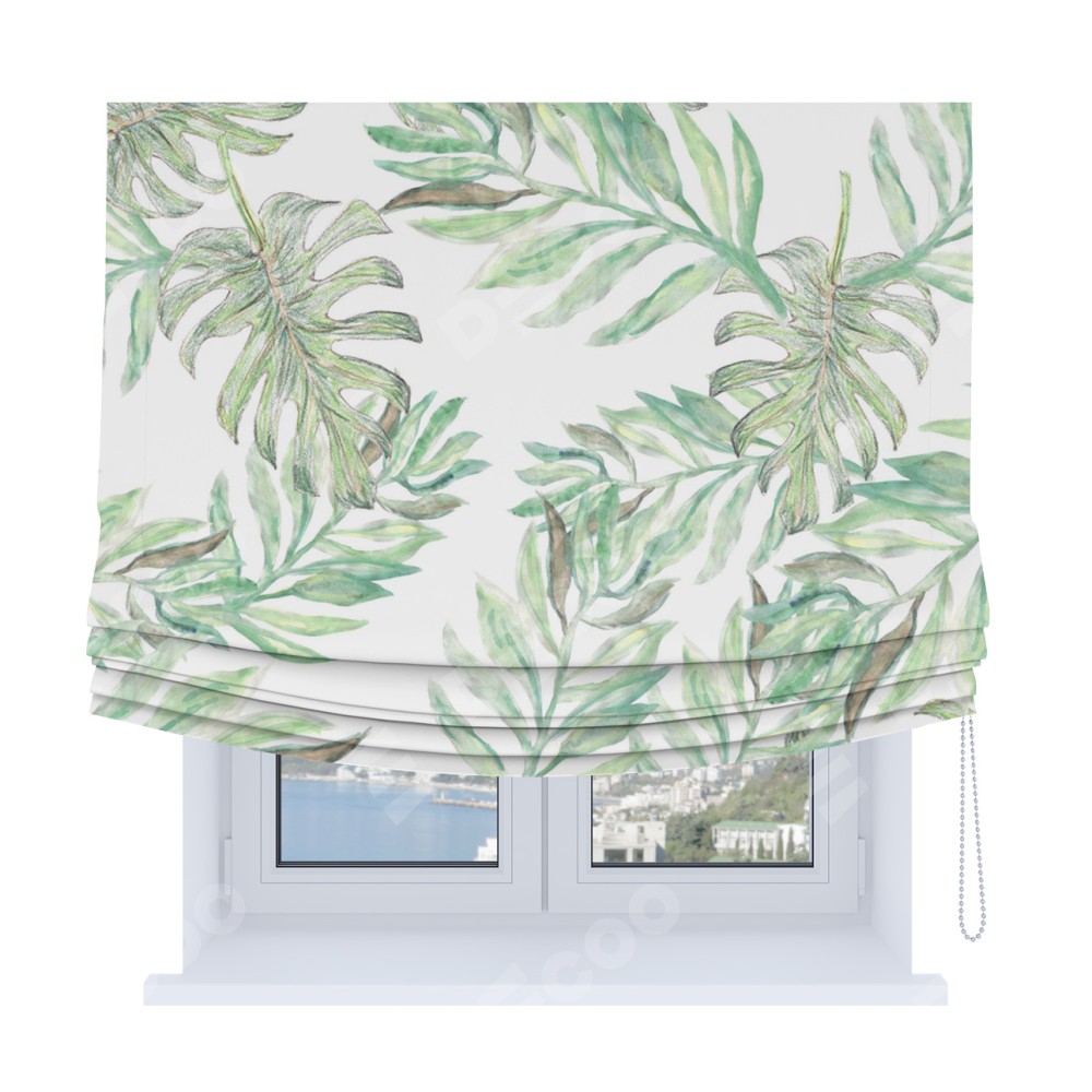 Римская штора Soft с мягкими складками, «Листья монстеры»