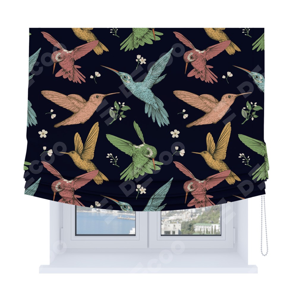 Римская штора Soft с мягкими складками, «Птицы и цветы»
